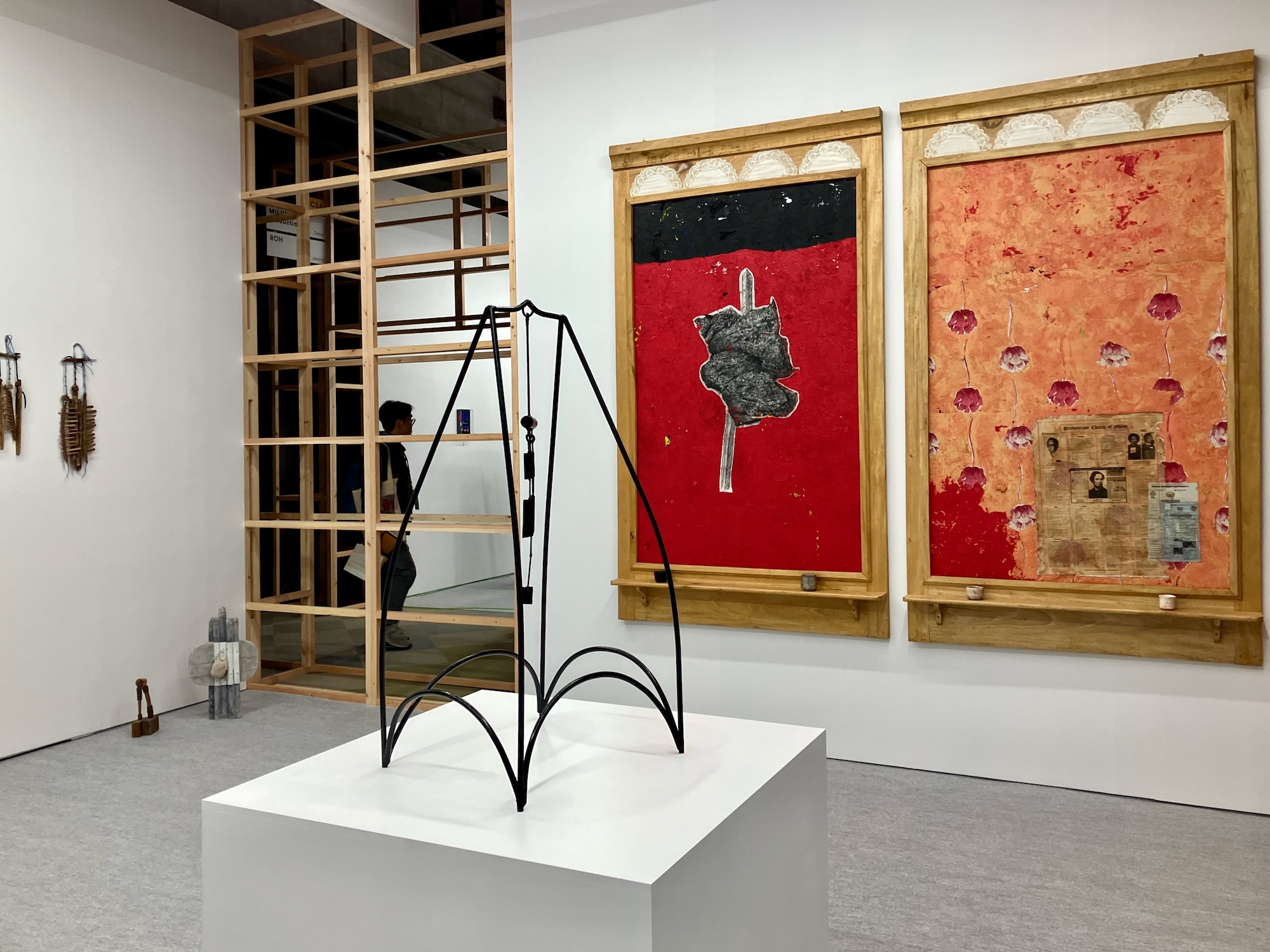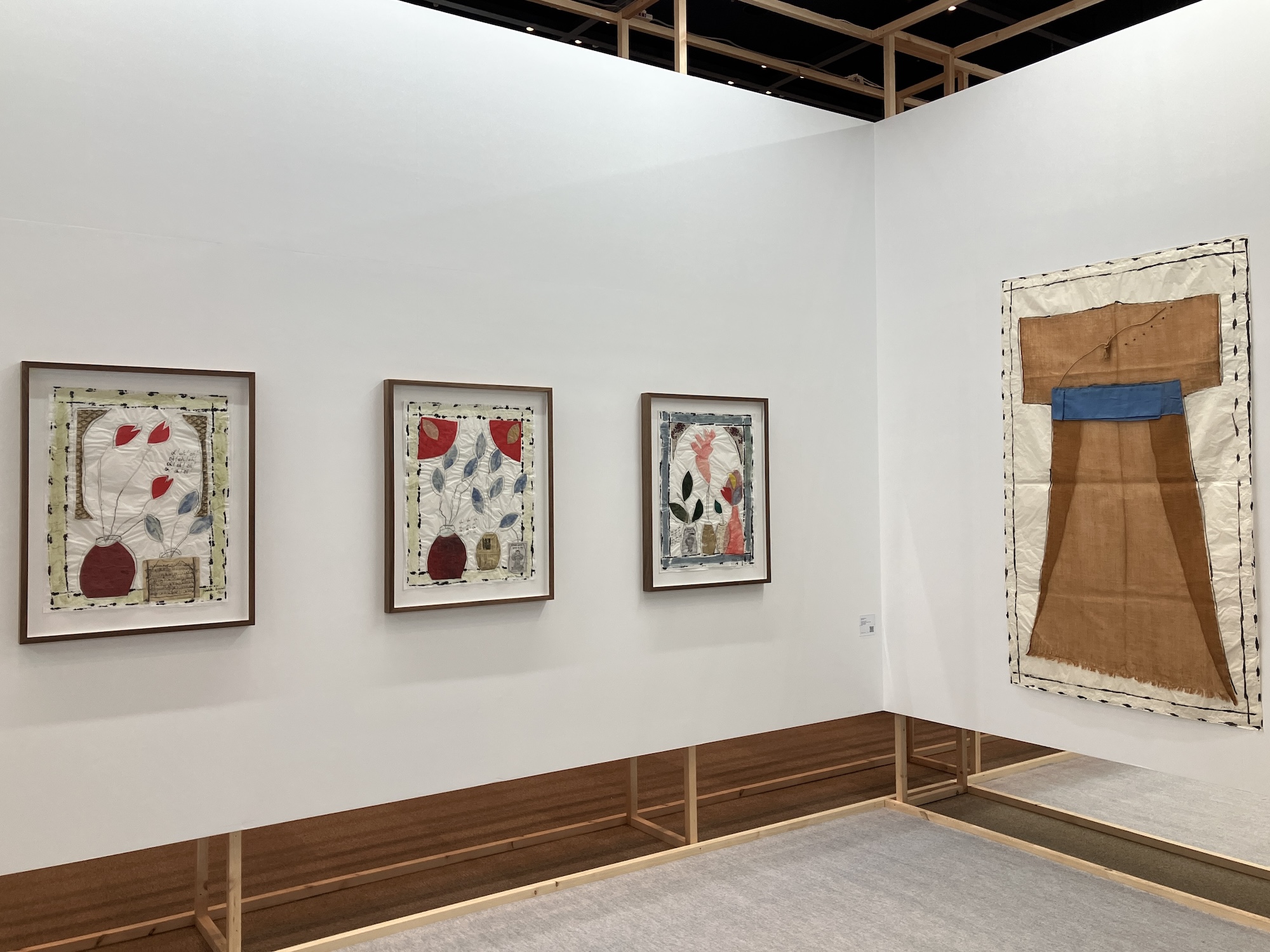 会場デザインを手がけたのは建築家・周防貴之。木製の格子に囲まれた外観は、従来のアートフェアの印象を覆すような柔らかさを備える。内部ではブース同士がゆるやかに連続し、開放的でありながら迷路のような空間が生まれている。