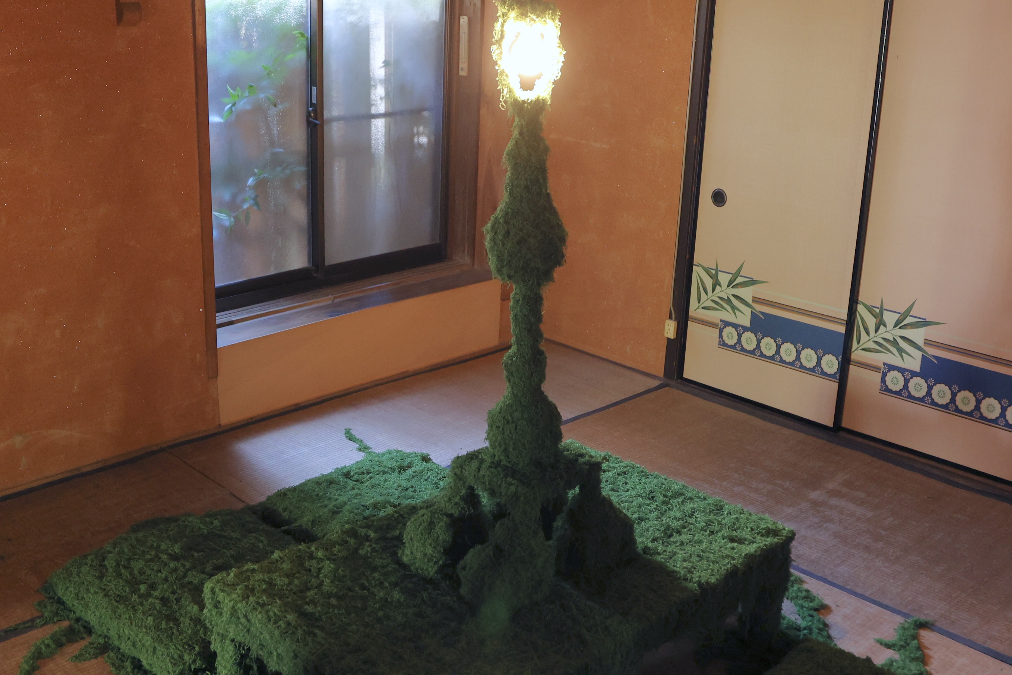 スウェーデン人アーティストのロバート・ハイスは、和室が苔に侵食されたような緑のインスタレーションを制作。日本の建物や庭が経年で苔むしてゆく時間が連想される。