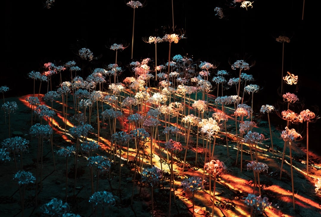 ここに展示されているのが、saiho×林イグネル小百合の《幻象の庭- Imagery Garden》。saihoは、アメリカ在住のランドスケープアーティスト。花や自然をテーマに制作をする。今作は、ストックホルム在住のサウンドアーティスト、林イグネル小百合とのコラボレーションで、視覚と瞑想的なサウンドが、観客を幻想の庭に没入させる。展示は1作品のみで、プライベートビューイングのように作品と対峙できる。