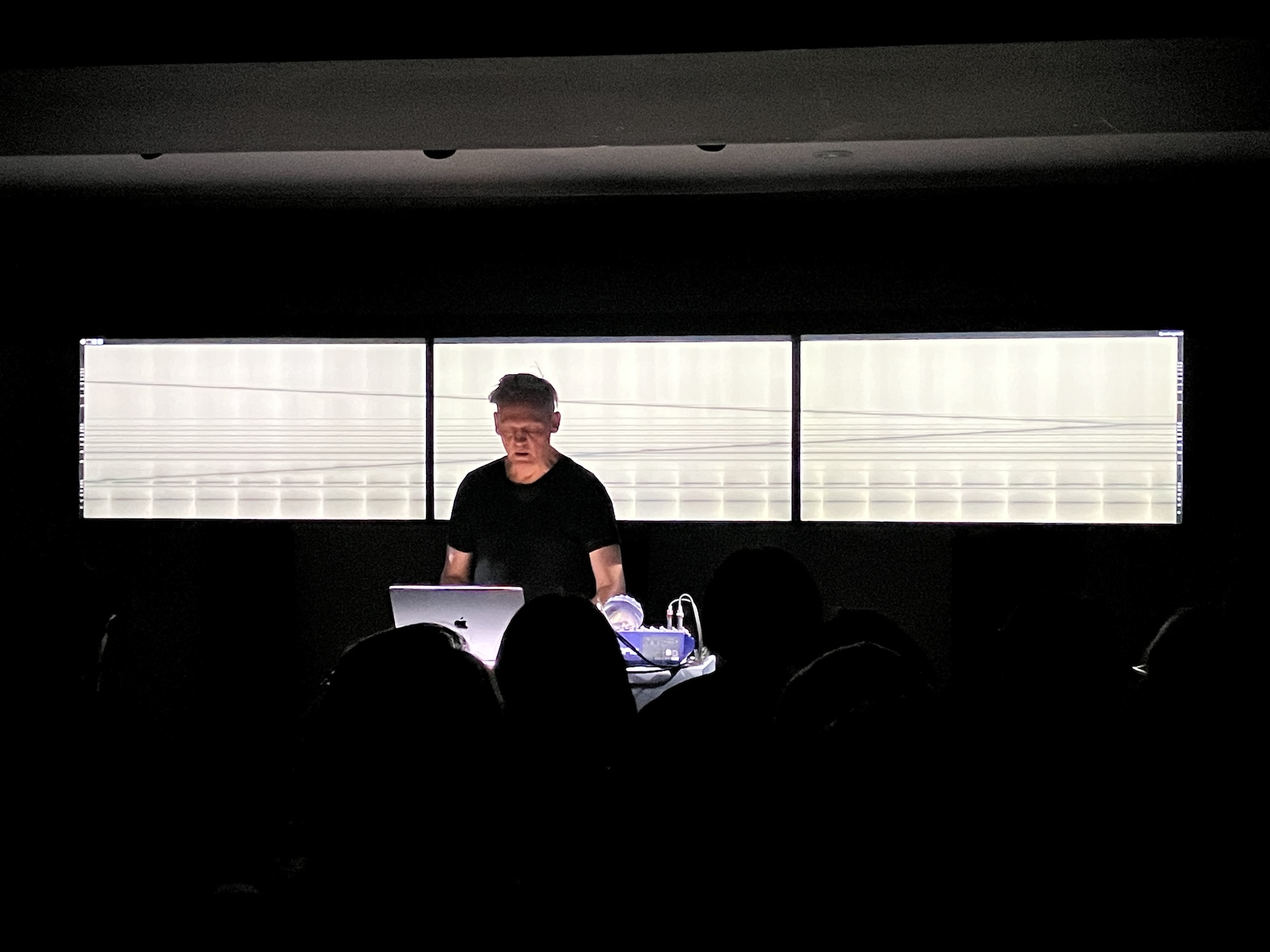 オープニングレセプションでは、ニコライが《Sono Obi》の楽曲を初めてライブパフォーマンスし、ライブ中は、音をスペクトログラムとして解析するソフトウェアによって楽曲がリアルタイムで可視化された。