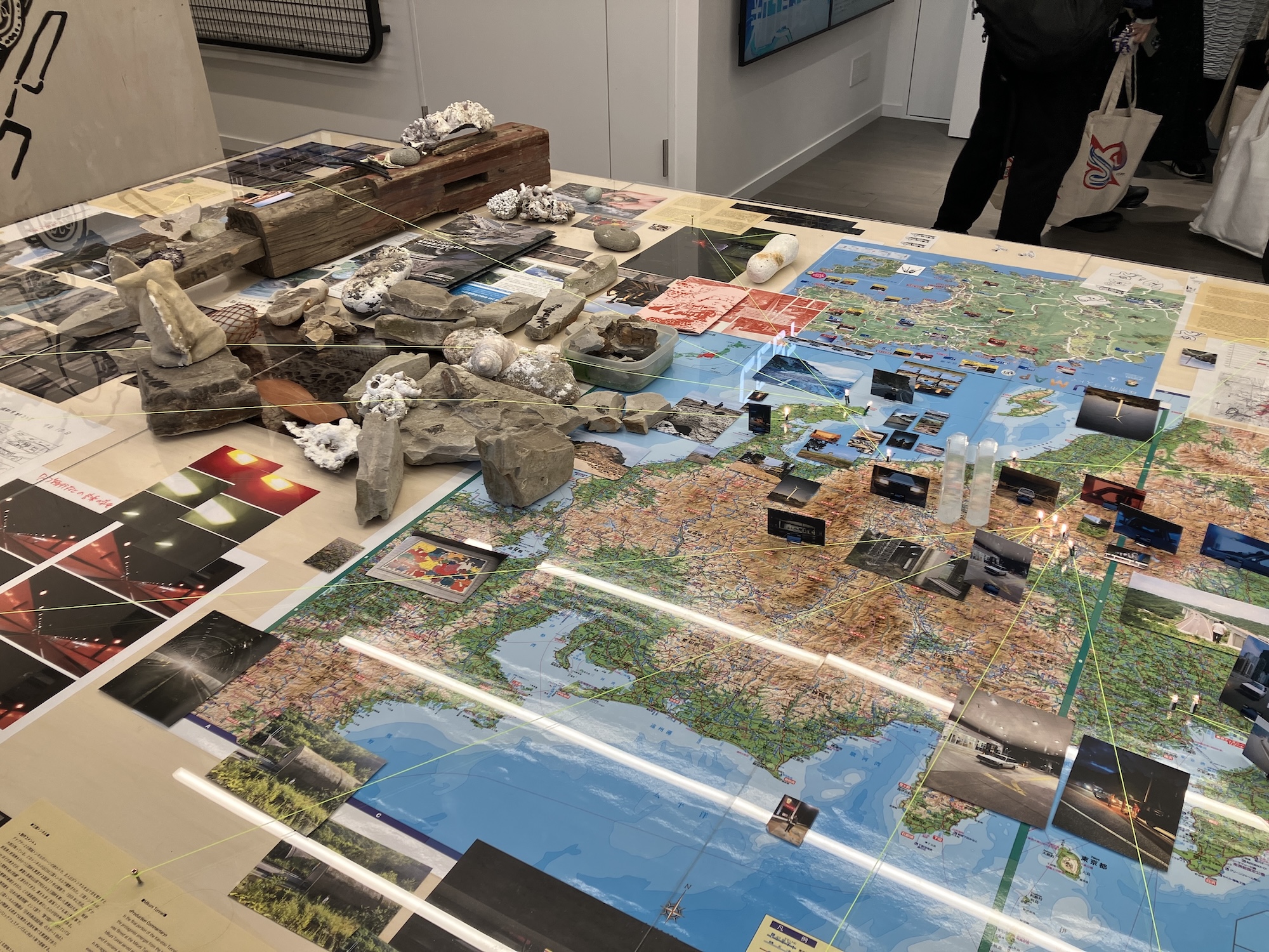 3階ではその背景にあるリサーチ資料やメモ、制作のインスピレーション源となったものや記録などを紹介。旅をしながら様々な物事をつなぎあわせ、都市と地域のあいだに新たな“道”を開こうとする彼らの日々の営みと実践を追体験することができる。