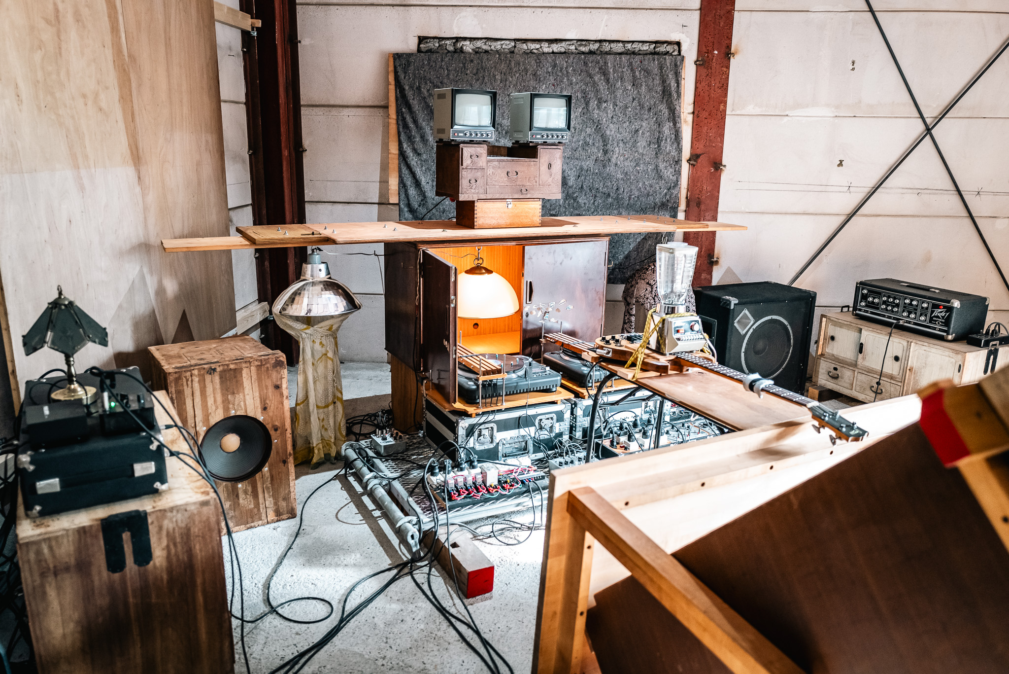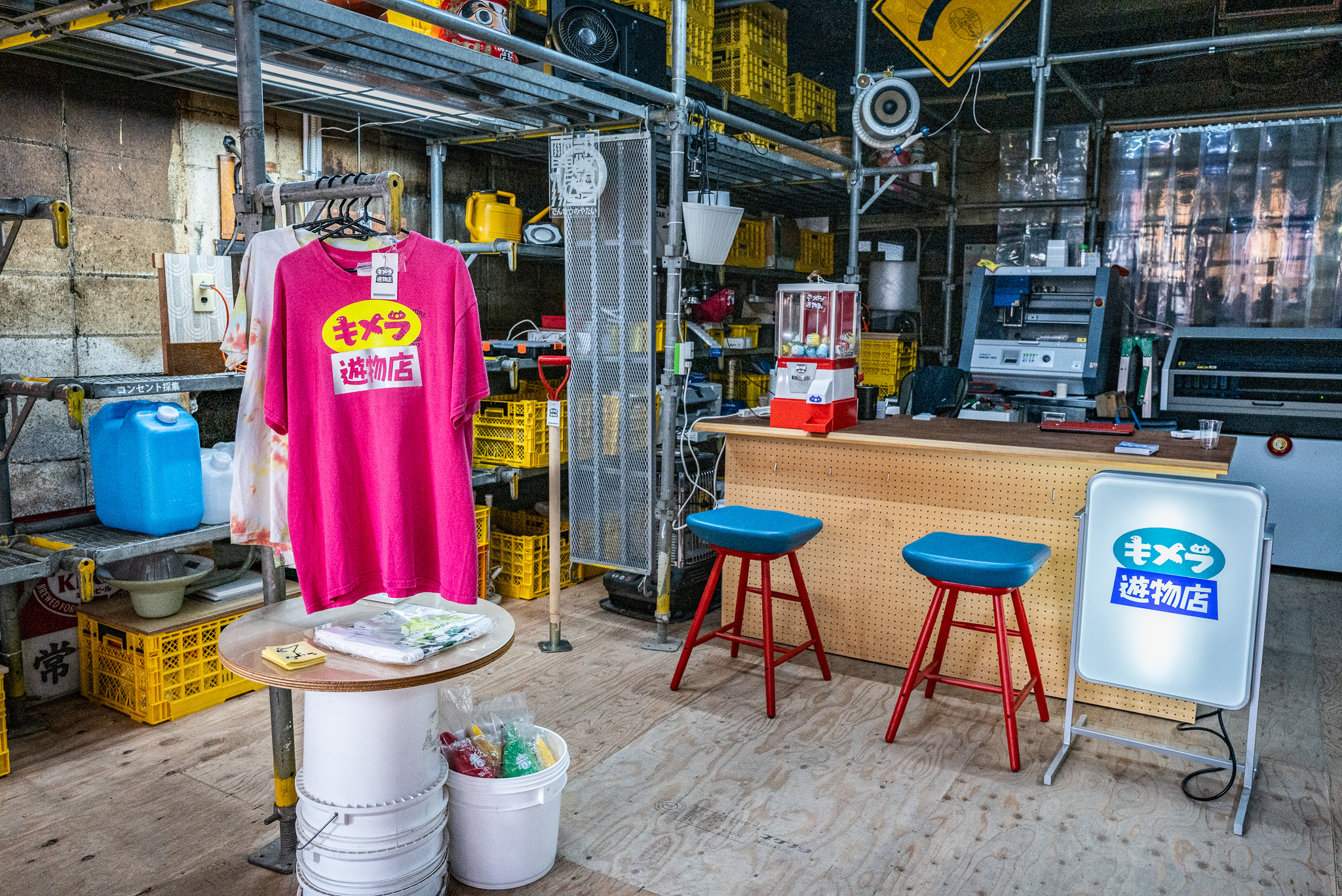 この場所は、まちから集めた材料置き場、工房、店舗として使用され、さまざまなモノとモノ、アイデアを組み合わせた「キメラ遊物」が、岩沢兄弟とその仲間たちによって日々生み出されていく。