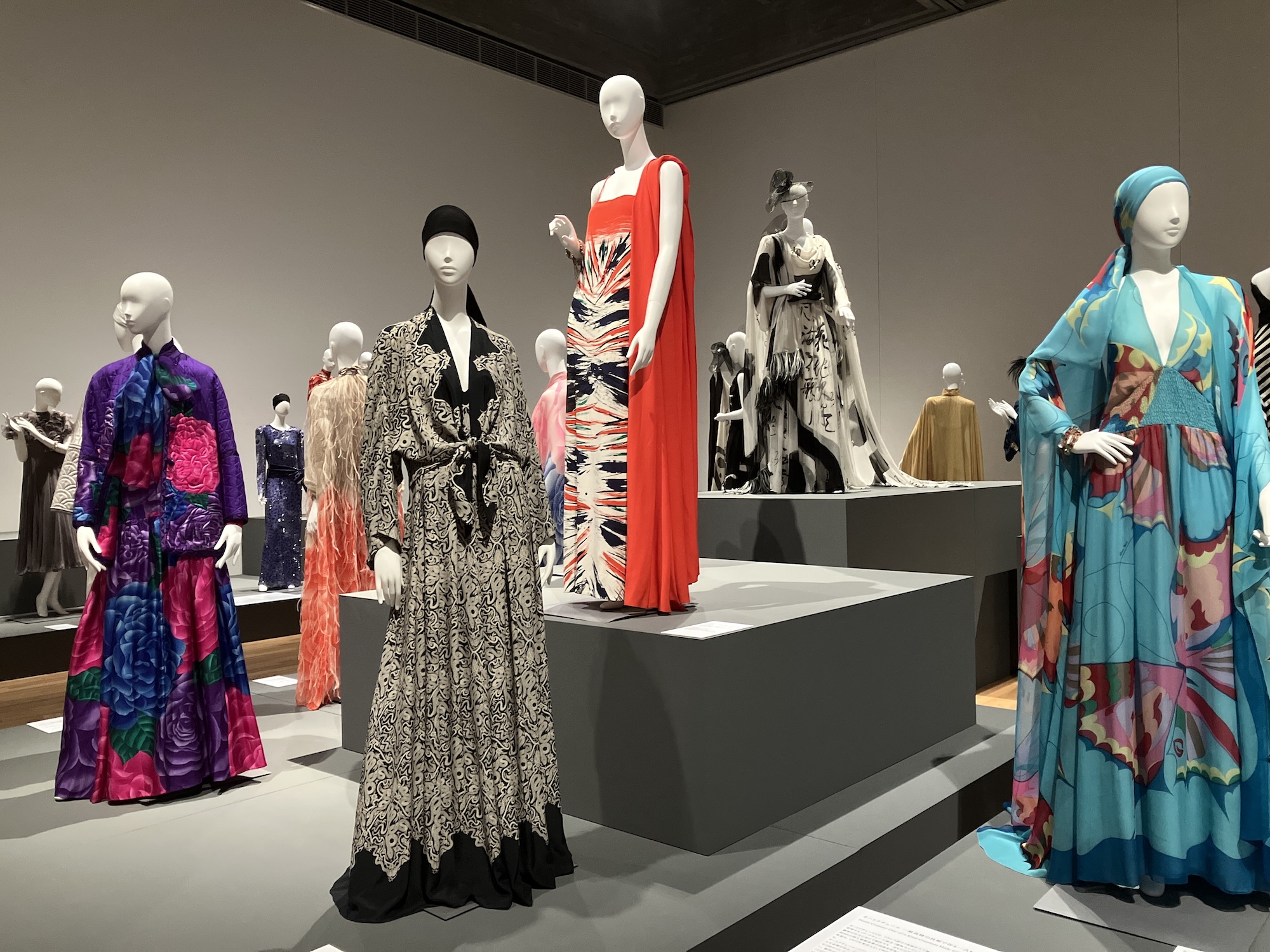 1977年、森はパリ・オートクチュール組合に正会員として加盟。東洋人として初の快挙だった。アメリカでは鮮やかな色使いや独自の柄で注目された森だが、パリではフォルムを重視した洋服づくりに挑戦していく。最高峰の素材と技法で作り上げられた一点ものならではのドレスが展示室を埋め尽くす光景は圧巻だ。
