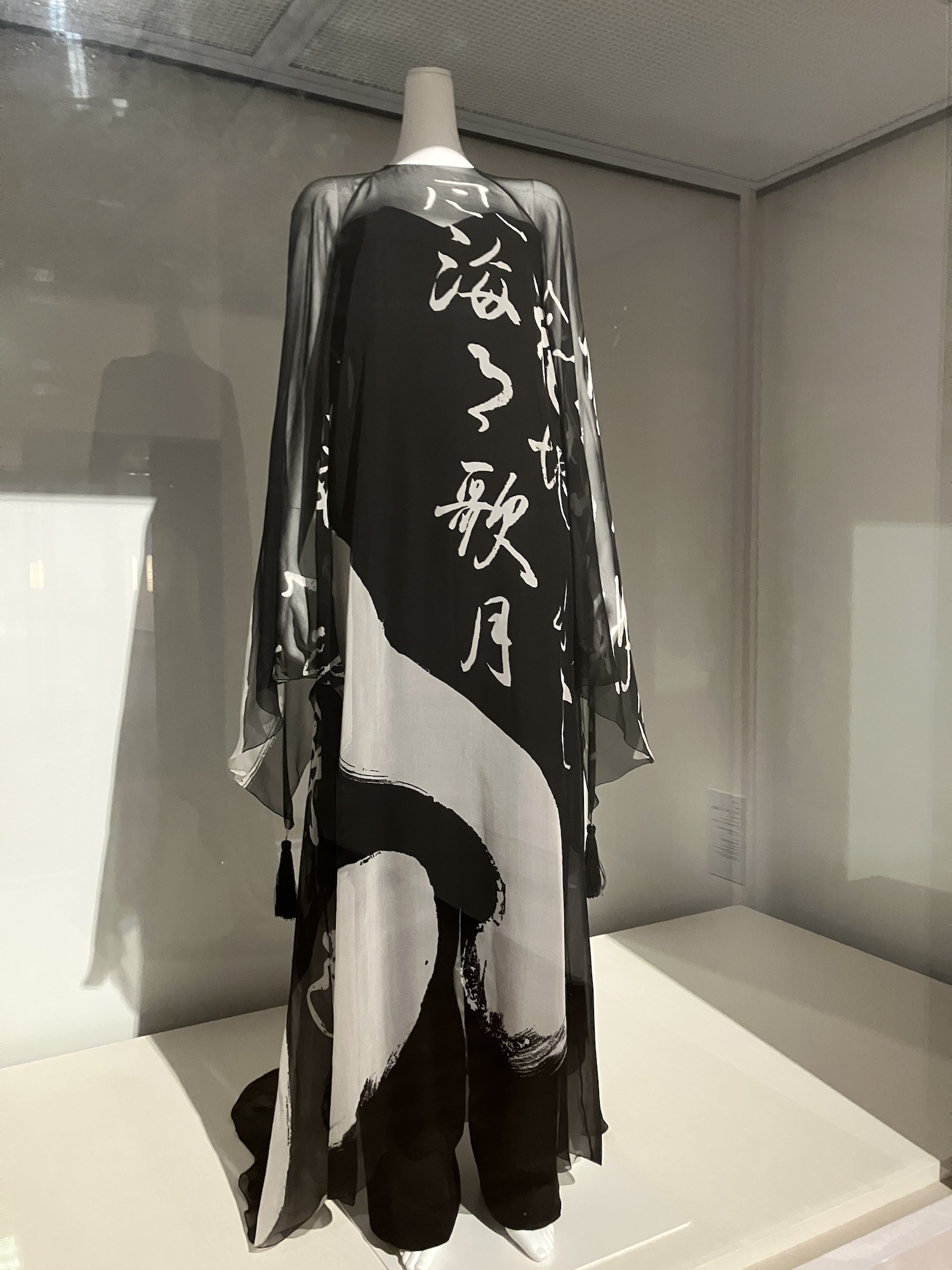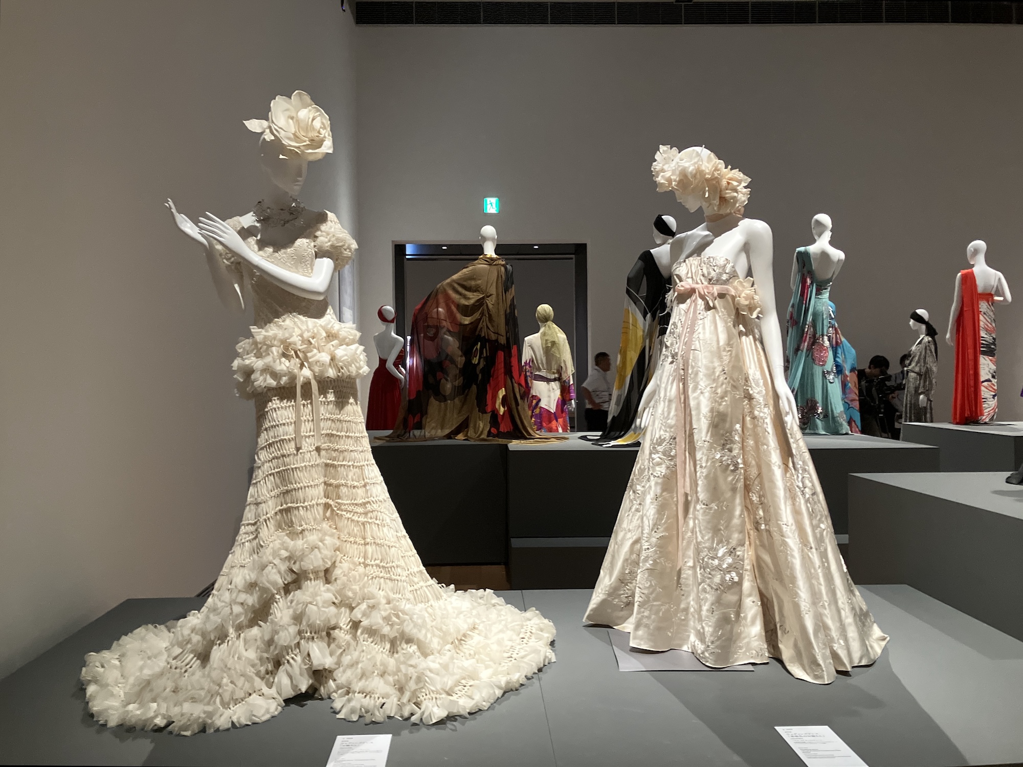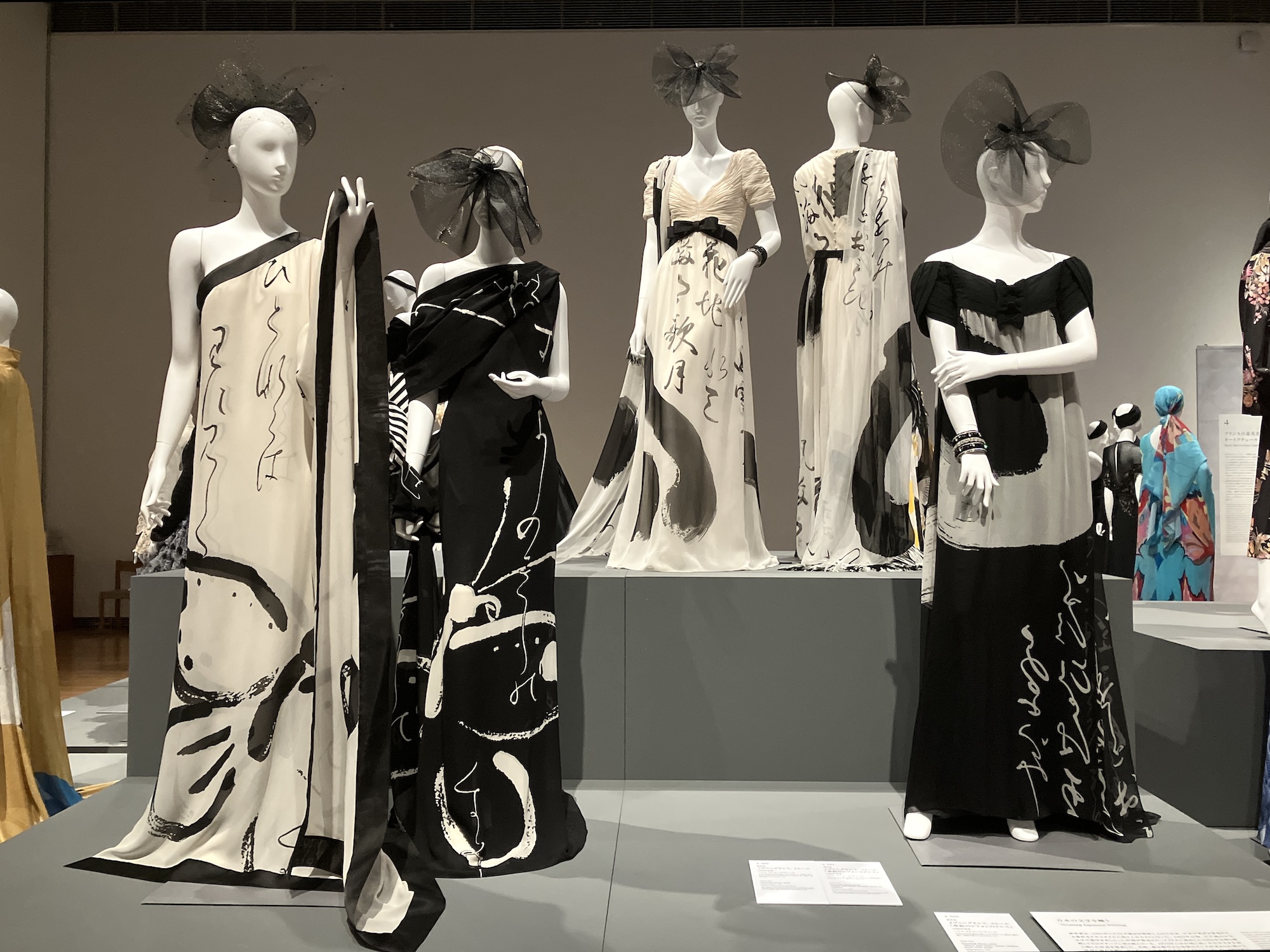 注目すべきは、ニューヨークのメトロポリタン美術館収蔵のドレス5点が里帰り展示されていることだ。会場入口では、墨絵をデザインに取り入れたオートクチュールのイヴニングドレスが来場者を迎える。