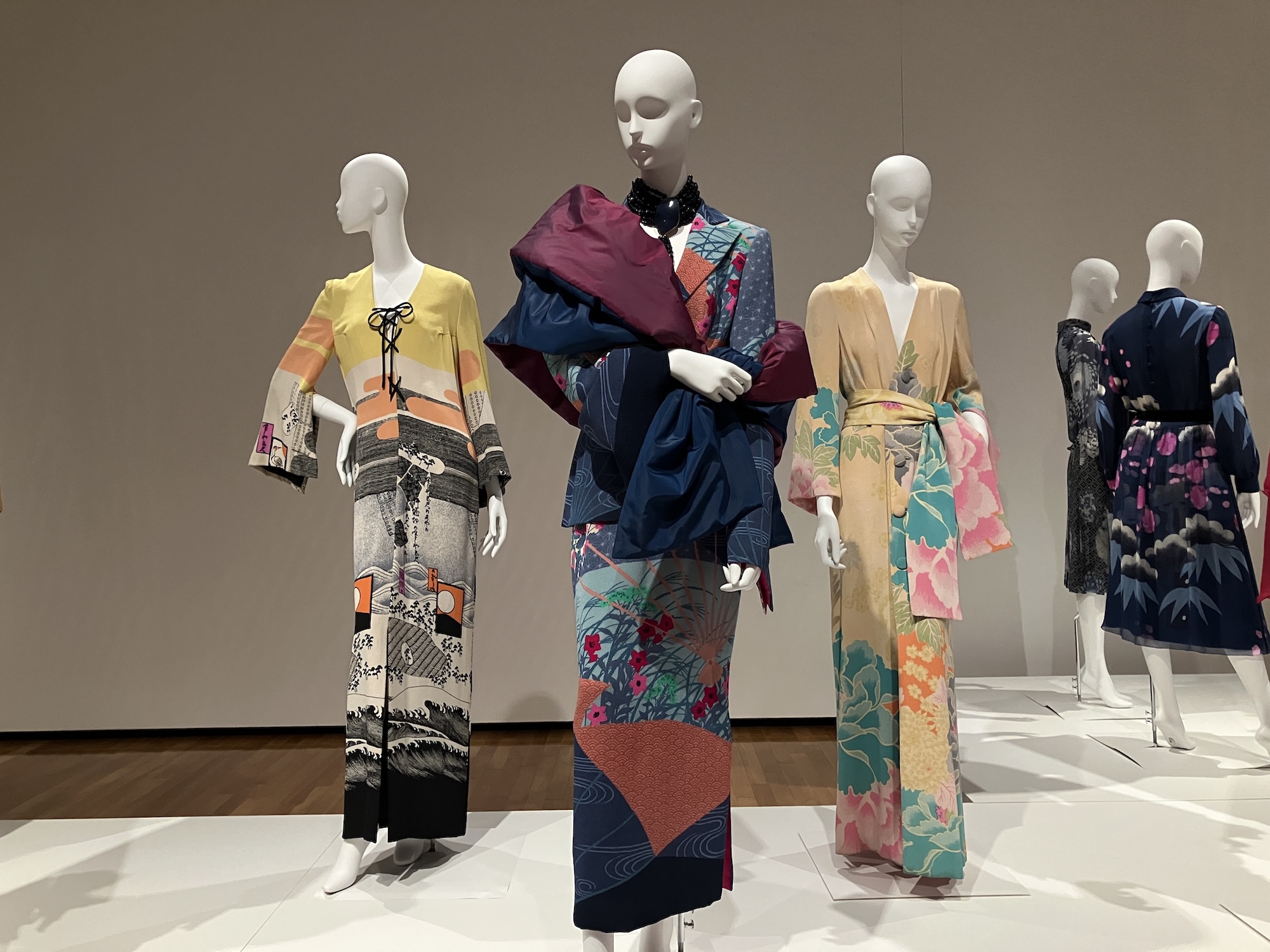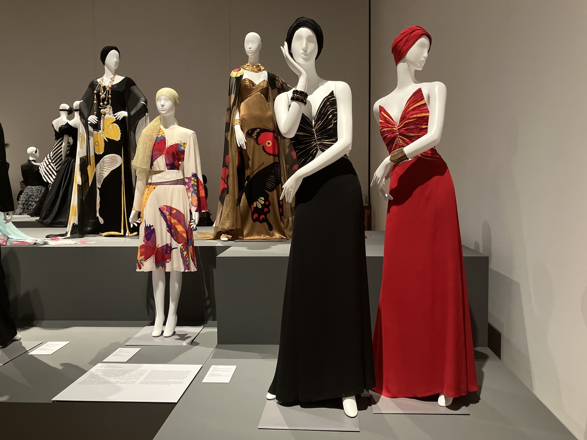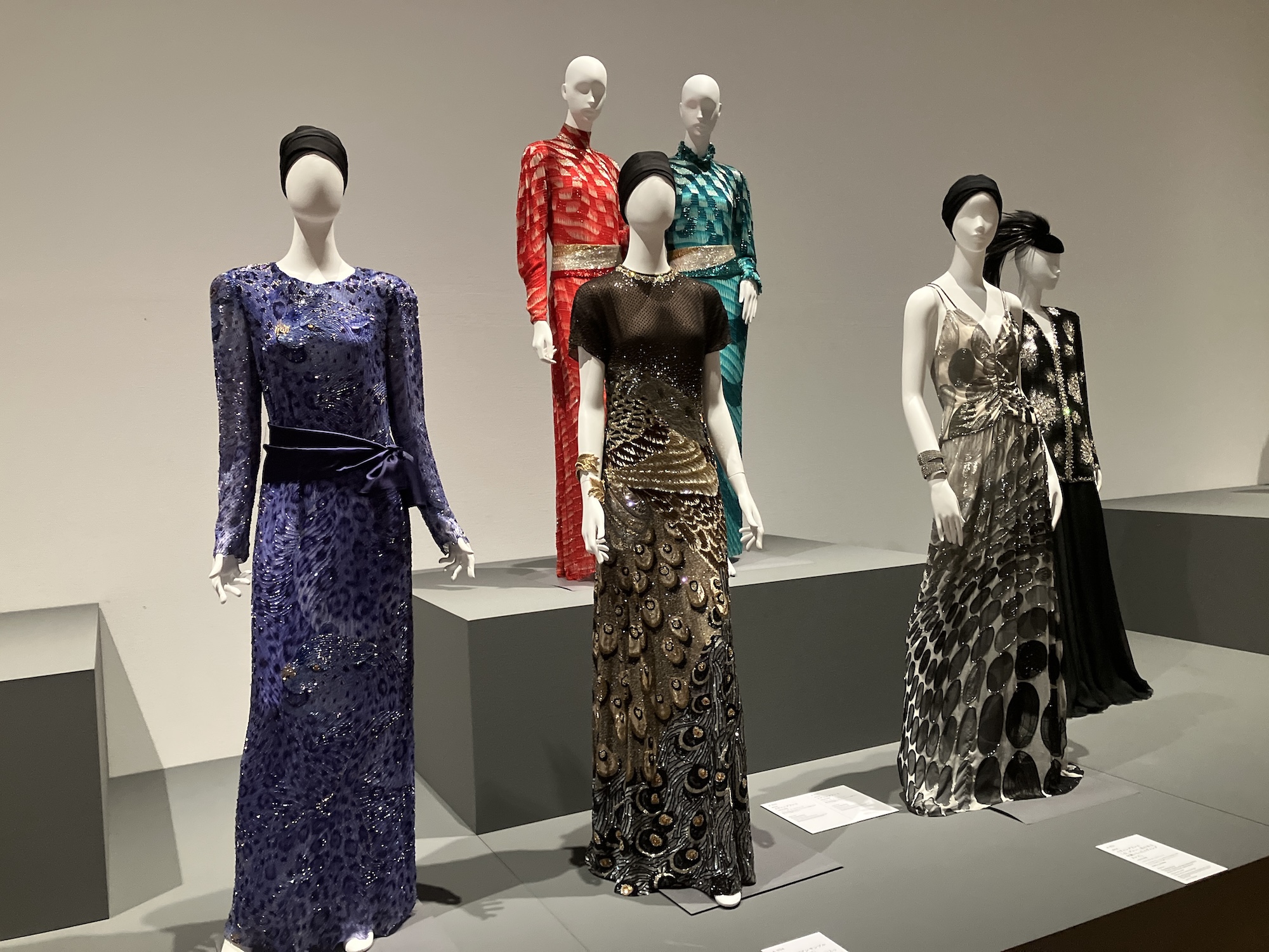 注目すべきは、ニューヨークのメトロポリタン美術館収蔵のドレス5点が里帰り展示されていることだ。会場入口では、墨絵をデザインに取り入れたオートクチュールのイヴニングドレスが来場者を迎える。