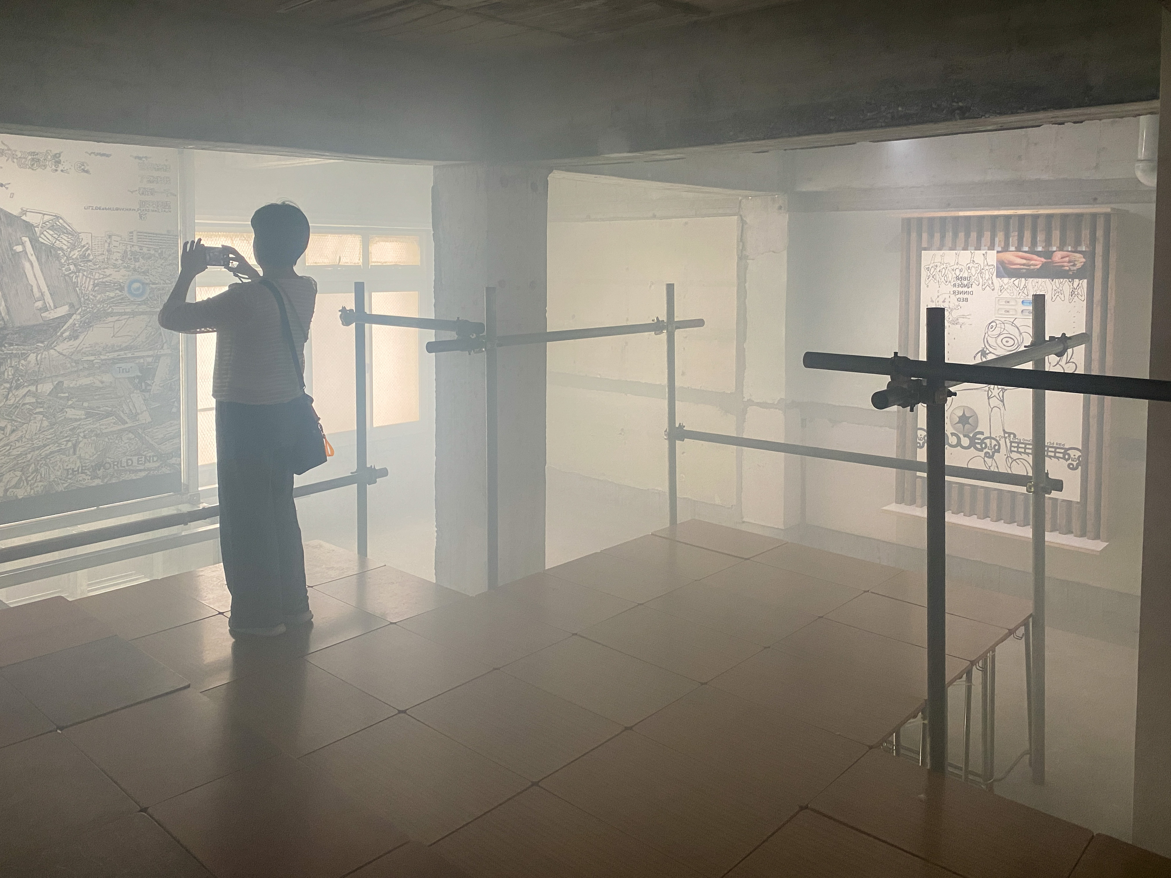 ビル1棟をまるまる使い、複数の作家による作品をひとつの物語に沿って並べた前回の「獸(第2章 / BEAUTIFUL DAYDREAM)」に対して、今回行われた第3章は「展覧会」としての側面が薄く、作家自身が制作した作品も出品されていない。しかし、第2章でも用いられていた身体性を強く喚起する展示空間の構造や、時代の空気感をとらえる視点は、「獸」というプロジェクトから一貫して感じられるものだ。
