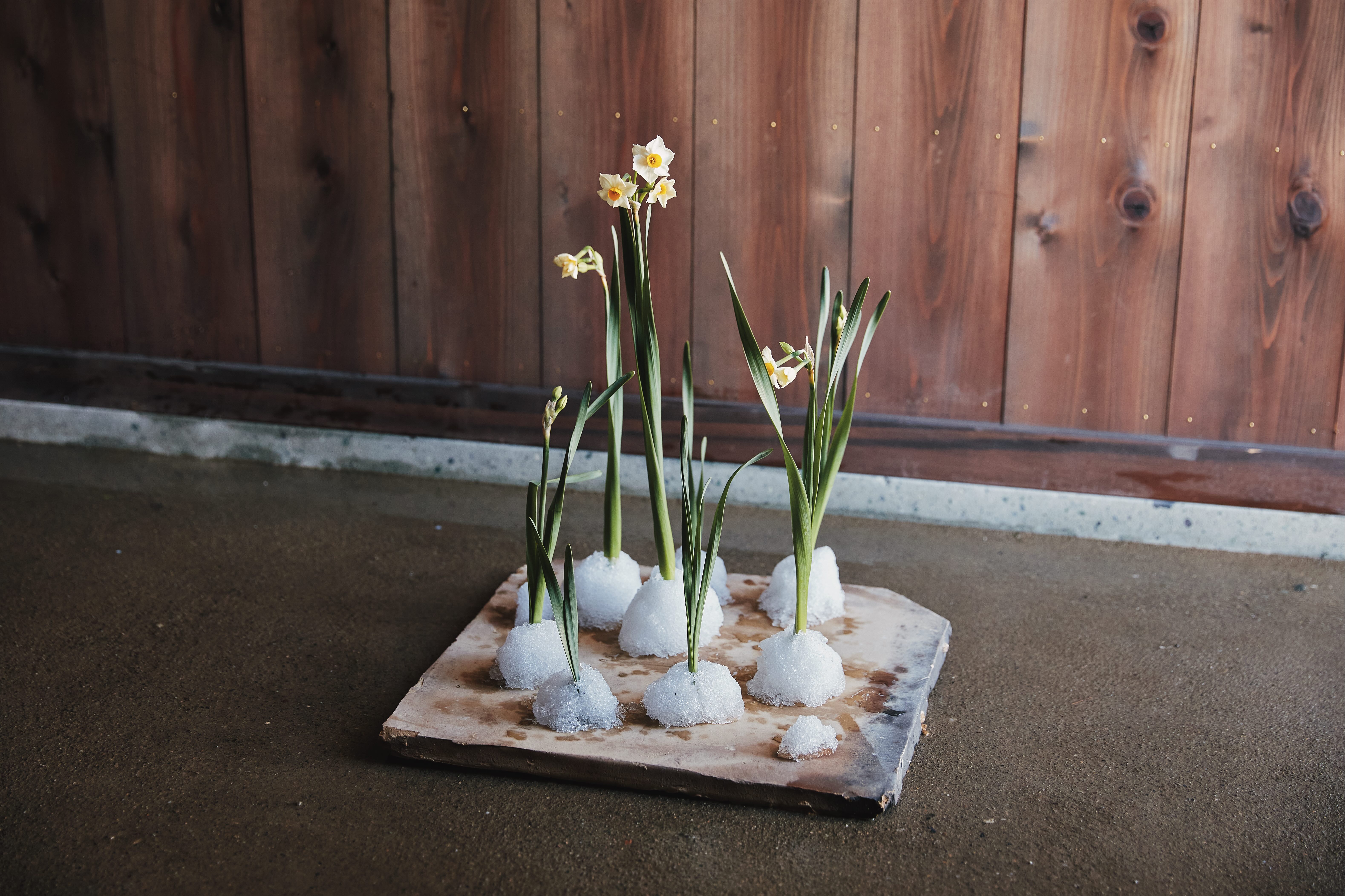 ——《如月 2018》は、雪球に房咲水仙がいけられていて、とても清々しいです。