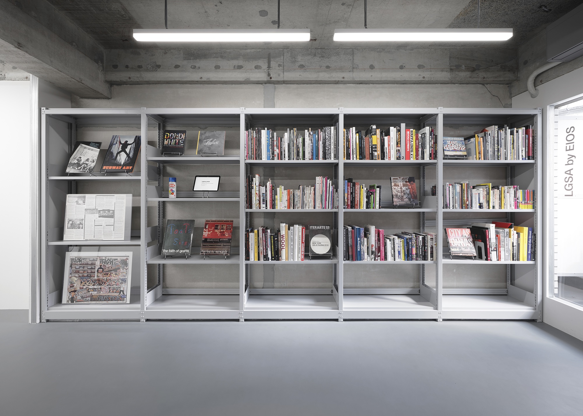 アーティストの大山エンリコイサムのスタジオが手がける「LGSA by EIOS」は、ストリートアートとエアロゾル・ライティング、および隣接する文化領域についての社会理解の浸透と向上を目的に開室。資料の収集・管理・公開を中心に、展覧会やトークイベントなど複合的なプログラムを実施し、ストリートアートをめぐる言説環境の整備に従事することを目指す。