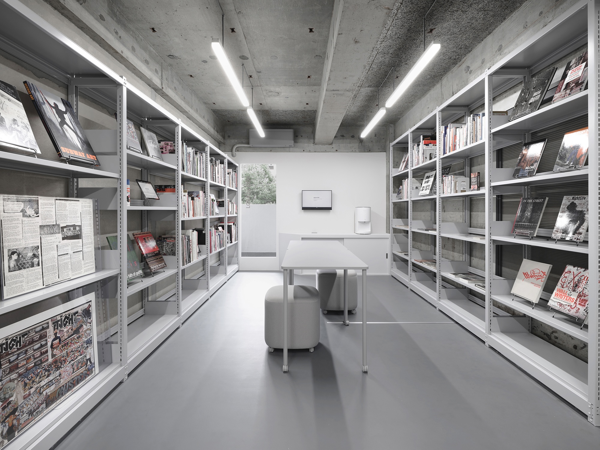 資料室はJR渋谷駅新南改札から徒歩5分の場所に位置する約35平米の空間で、展示エリアと書架エリアから構成。来室者は予約せずに両エリアを閲覧することができる。