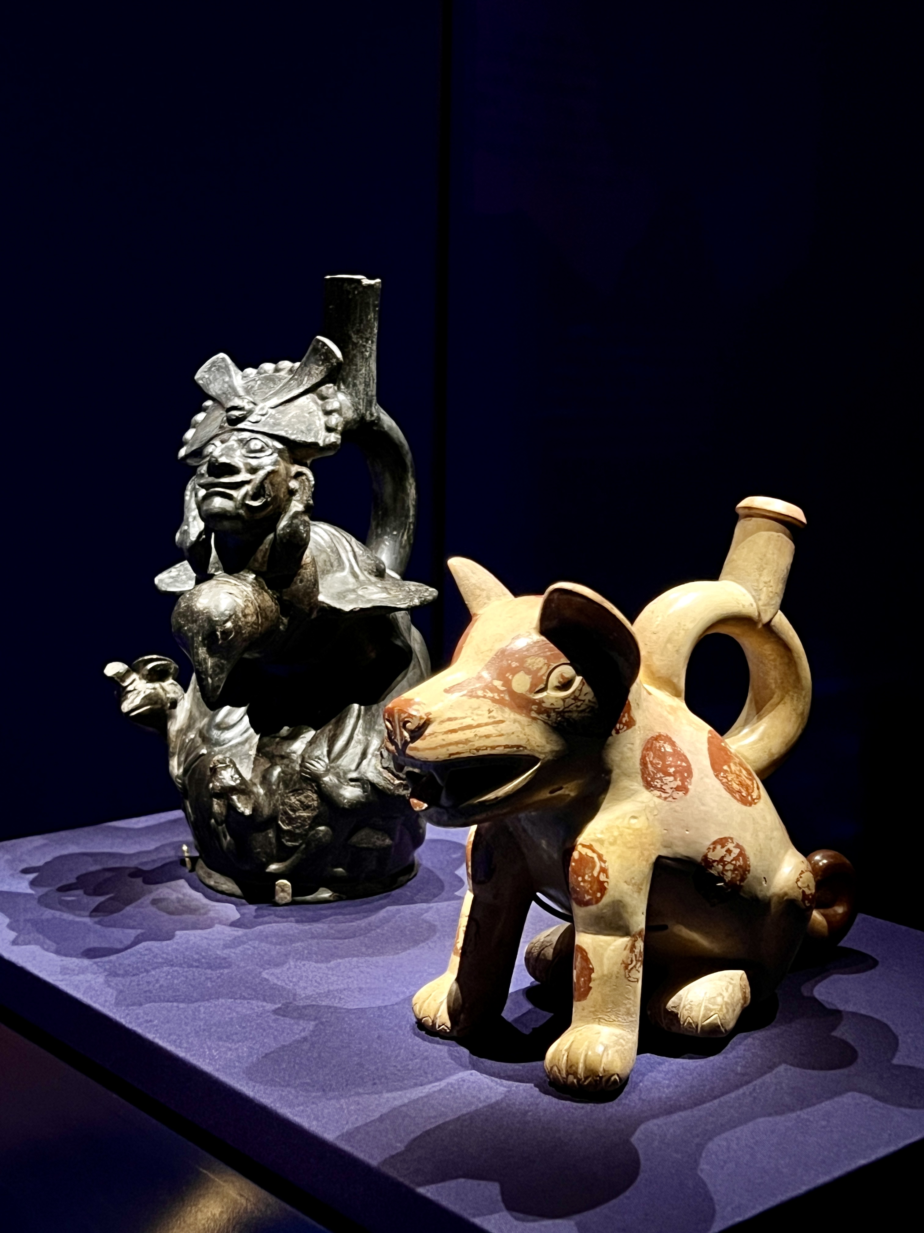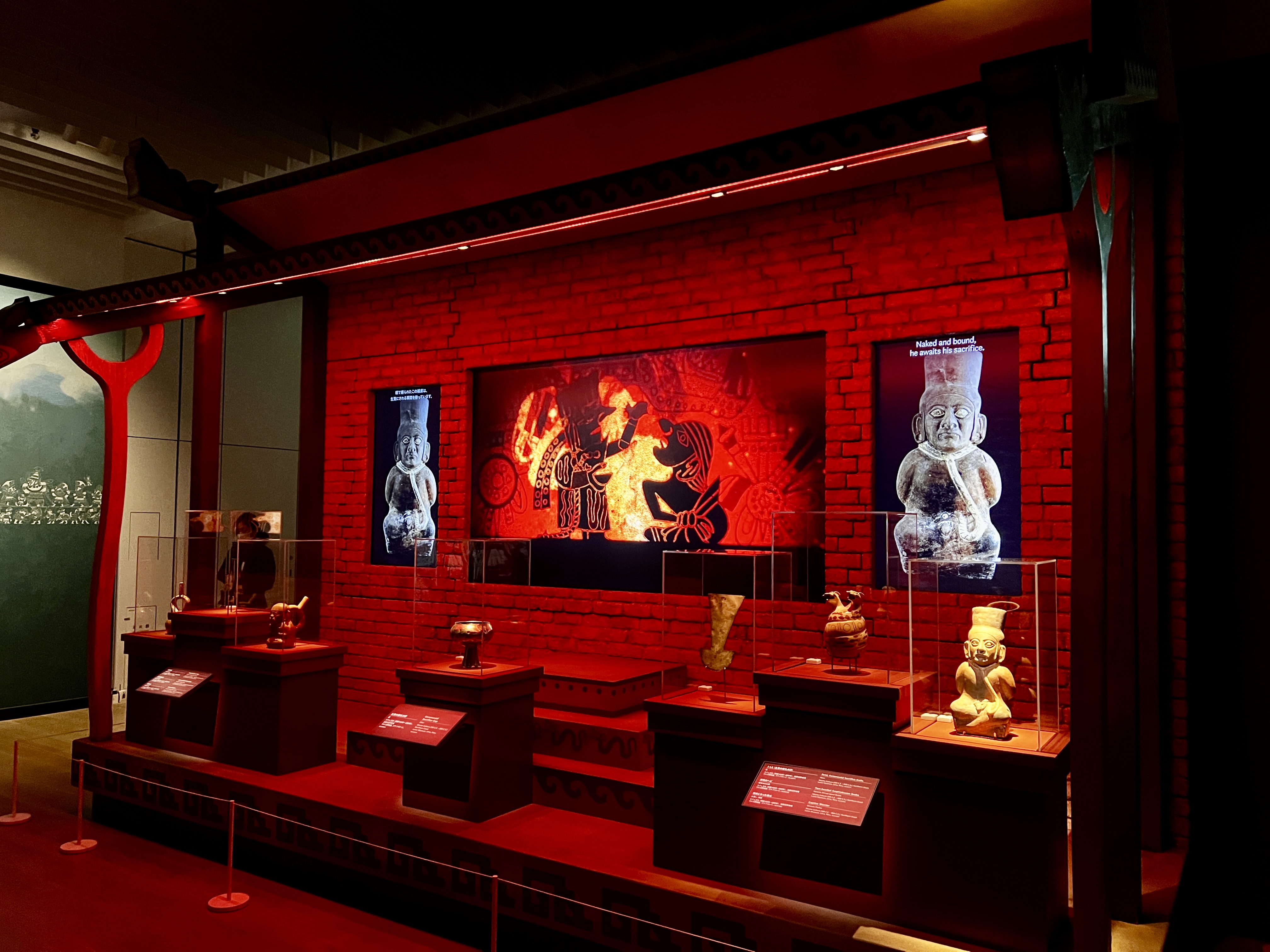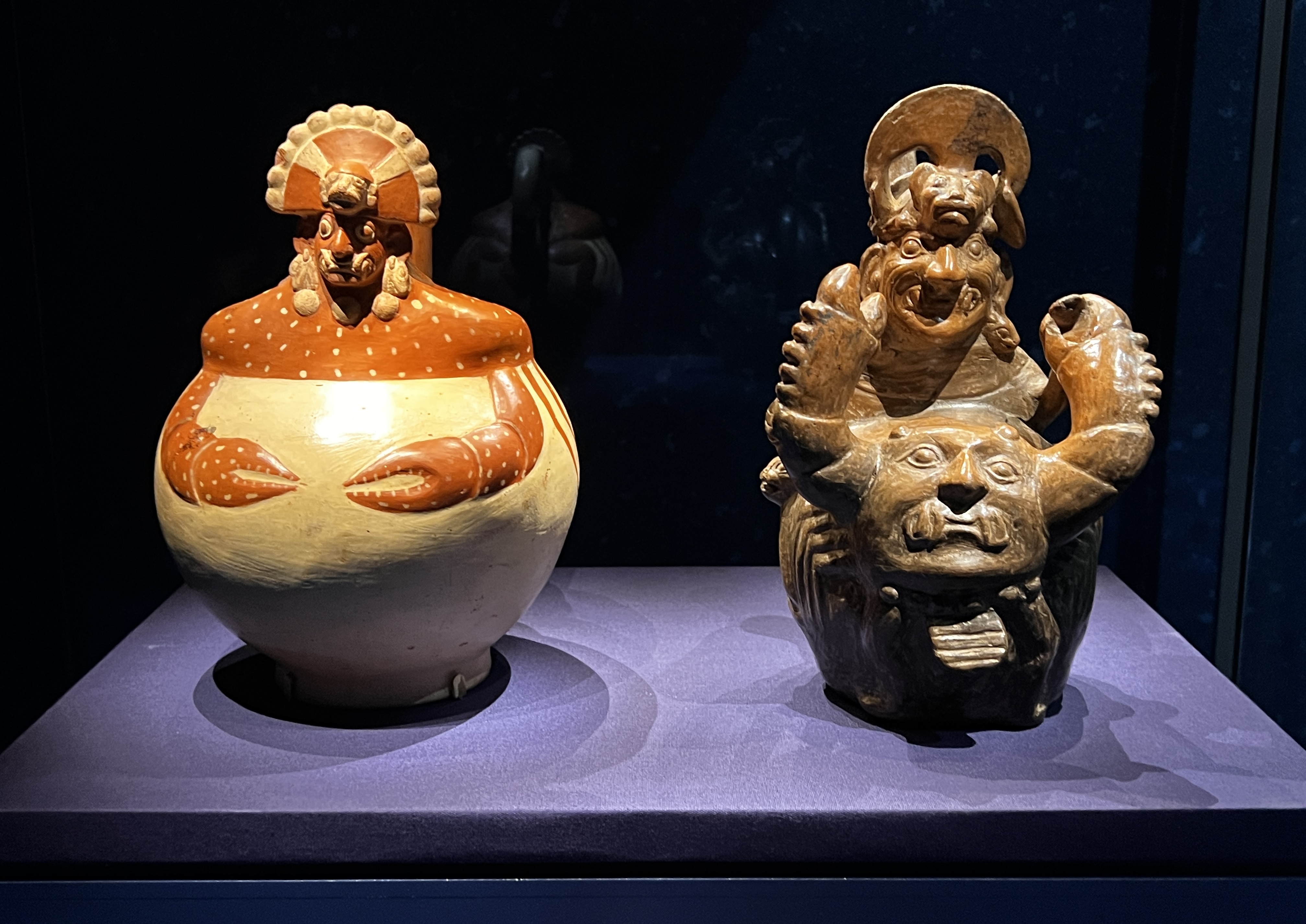また動物の力を借りて異界を自在に行き来するシャーマン(霊的な媒介者)の存在に迫る展示からは、アンデス独自の精神文化を見てとることができる。たとえば支配階級の人々は猛獣と考えられていた大型ネコ科動物の特徴を取り入れて描かれたり、夜に活動するフクロウは天空の世界とうちなる世界との間を結ぶ存在と考えられたりしていた。