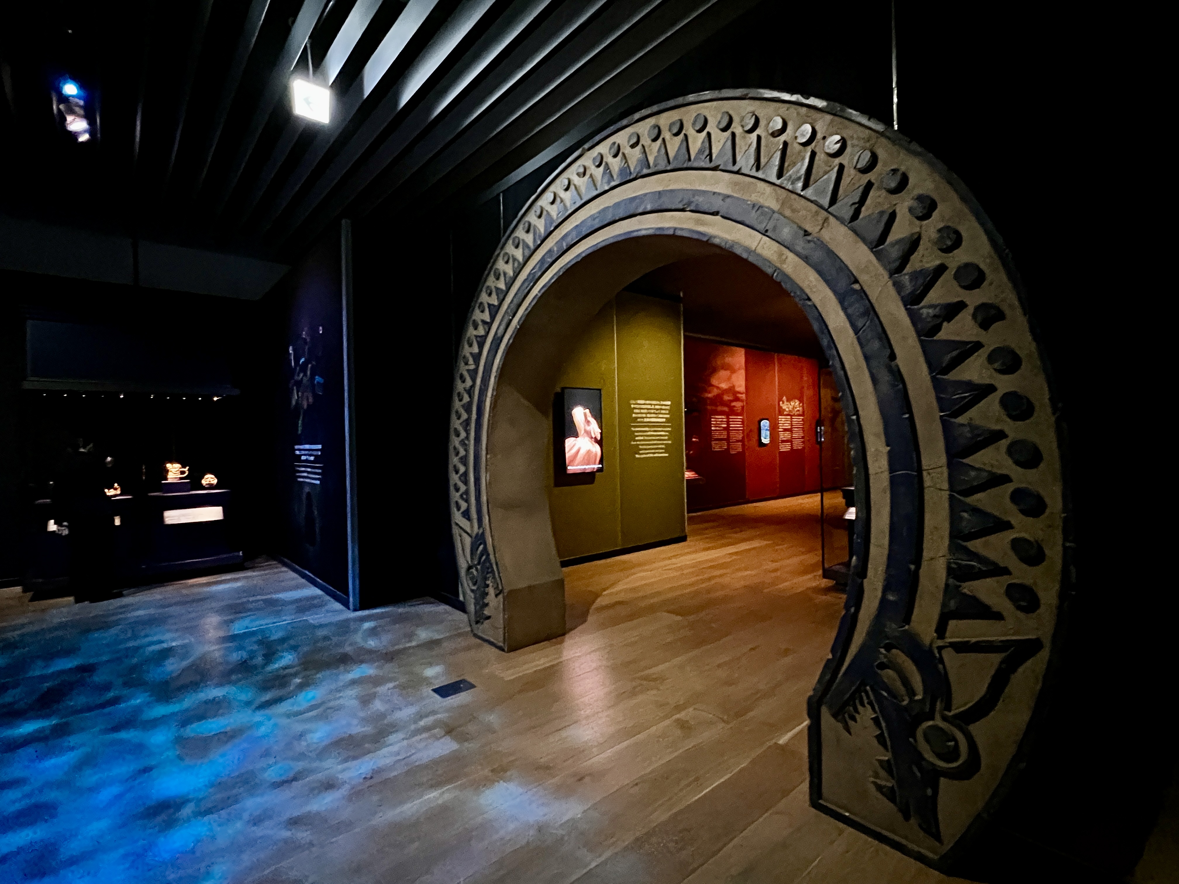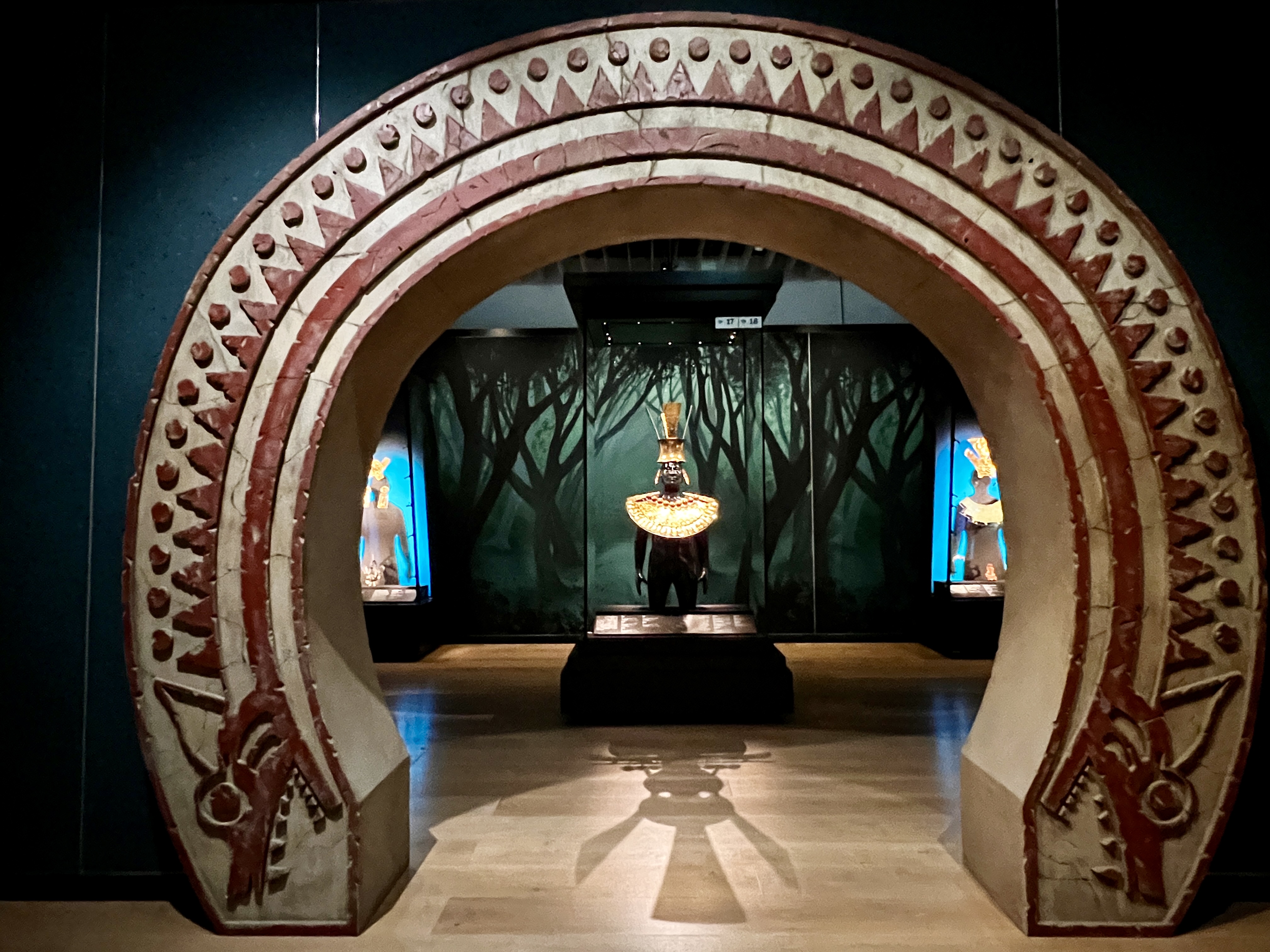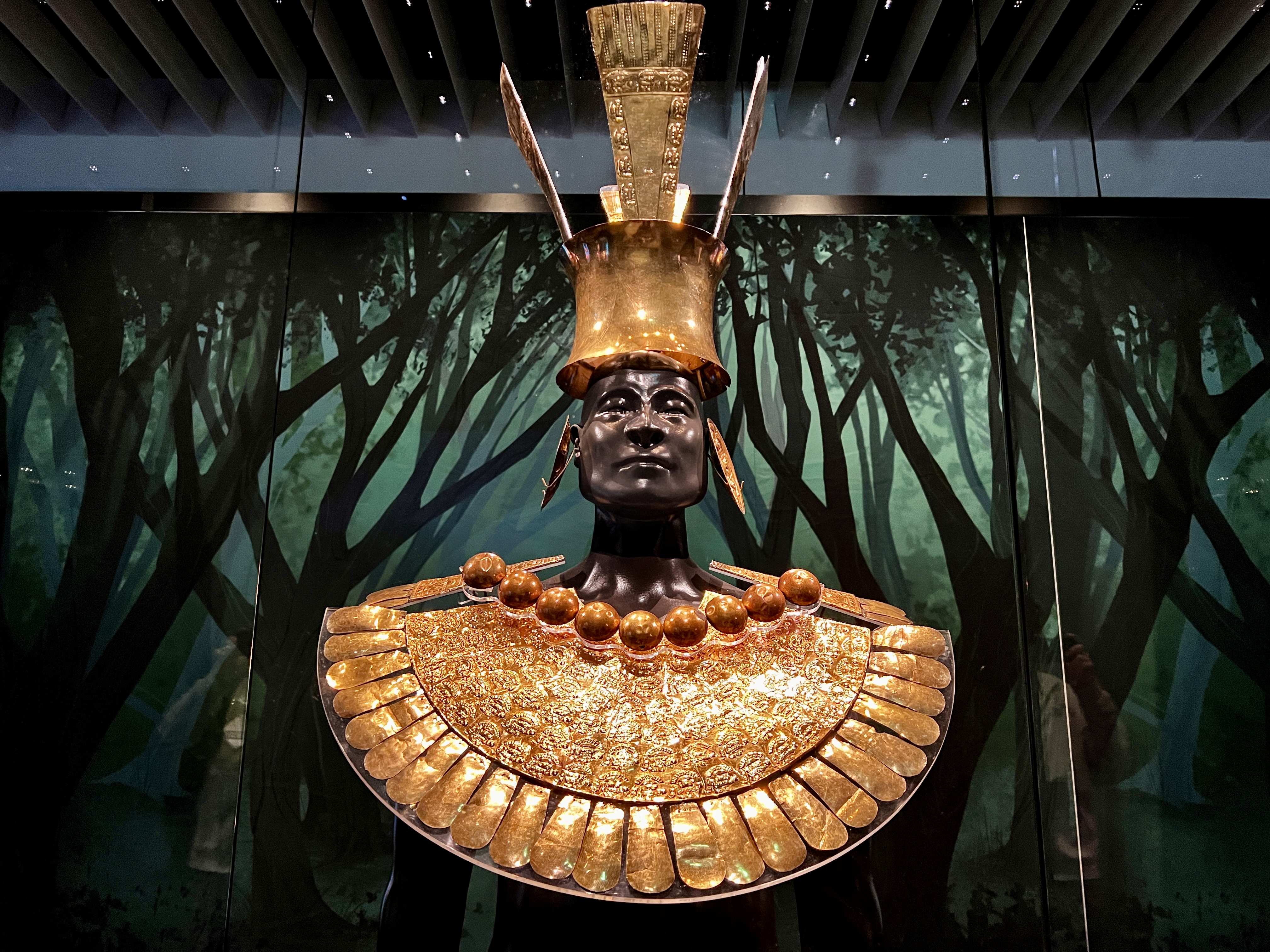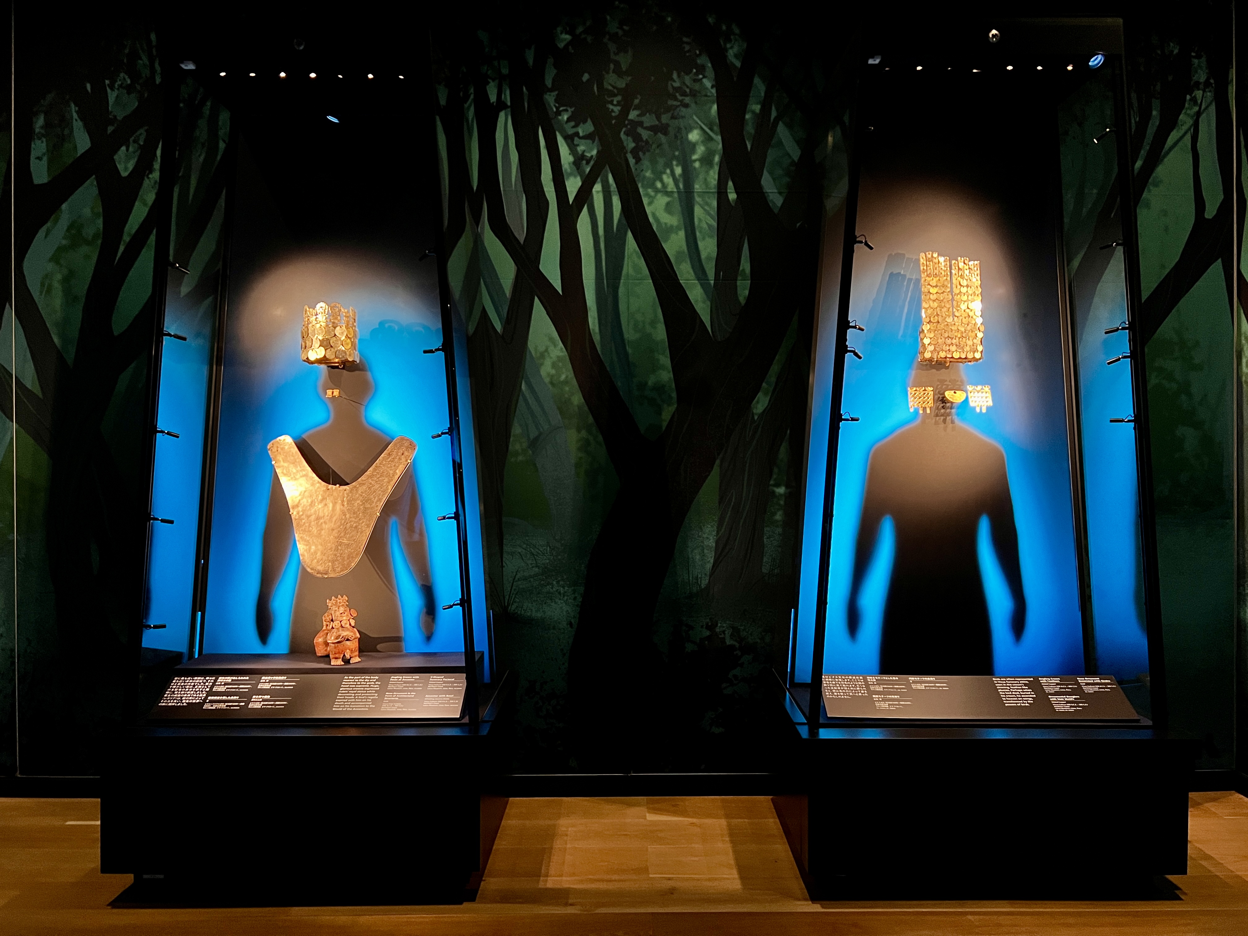 注目は、10人の支配者が実際に身につけていた装飾をそのままの姿で展示しているエリア。金や銀に輝くその姿から、神として奉られた人々の存在の重要性を感じることができる。