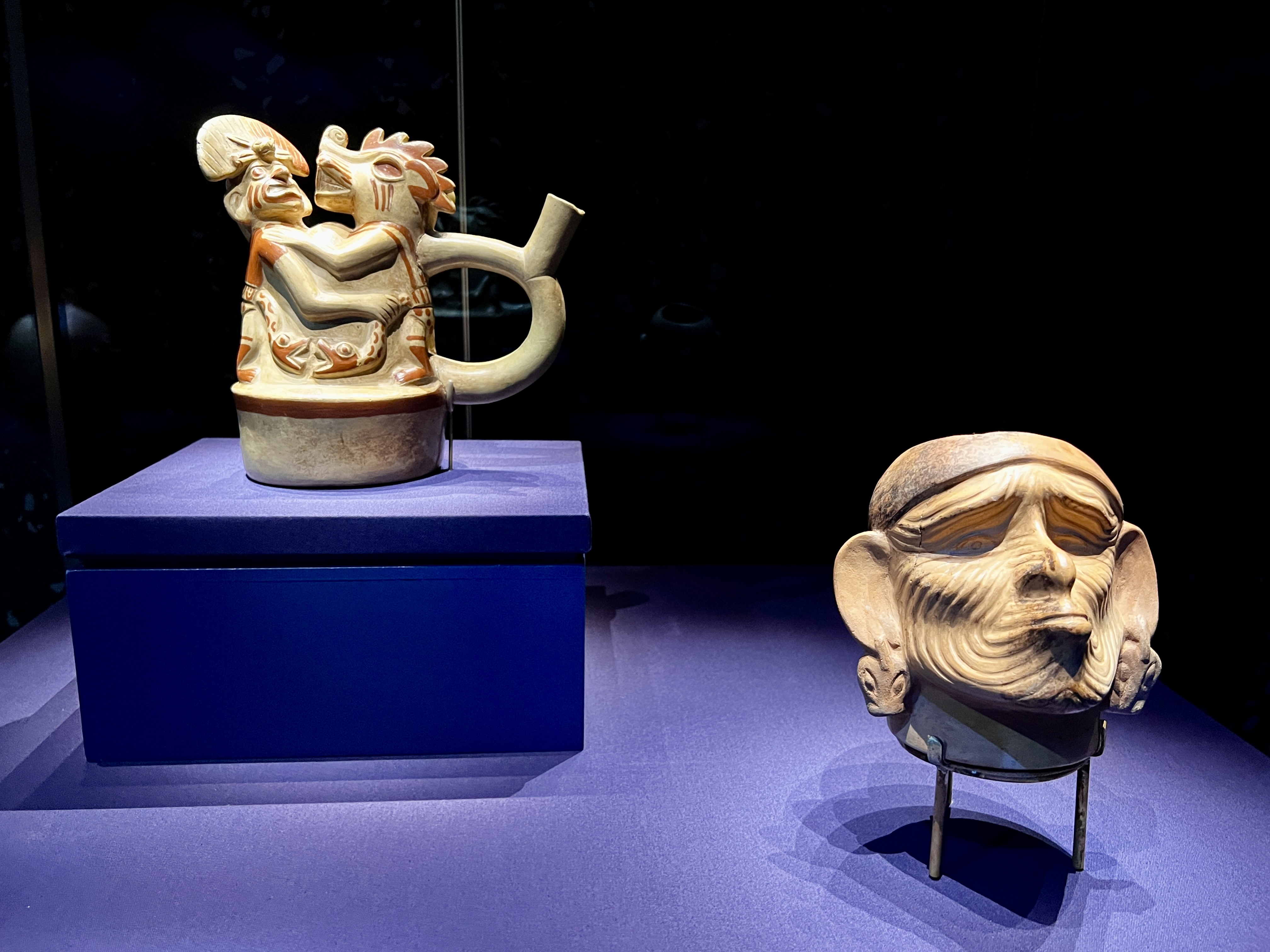 「モチェの英雄アイ・アパエックの冒険」は、前述のアイ・アパエックに焦点を当てるセクション。葬送仮面や大きな耳飾り、様々な生き物の姿に変身したアイ・アパエックの姿を表現したものなどが展示されている。