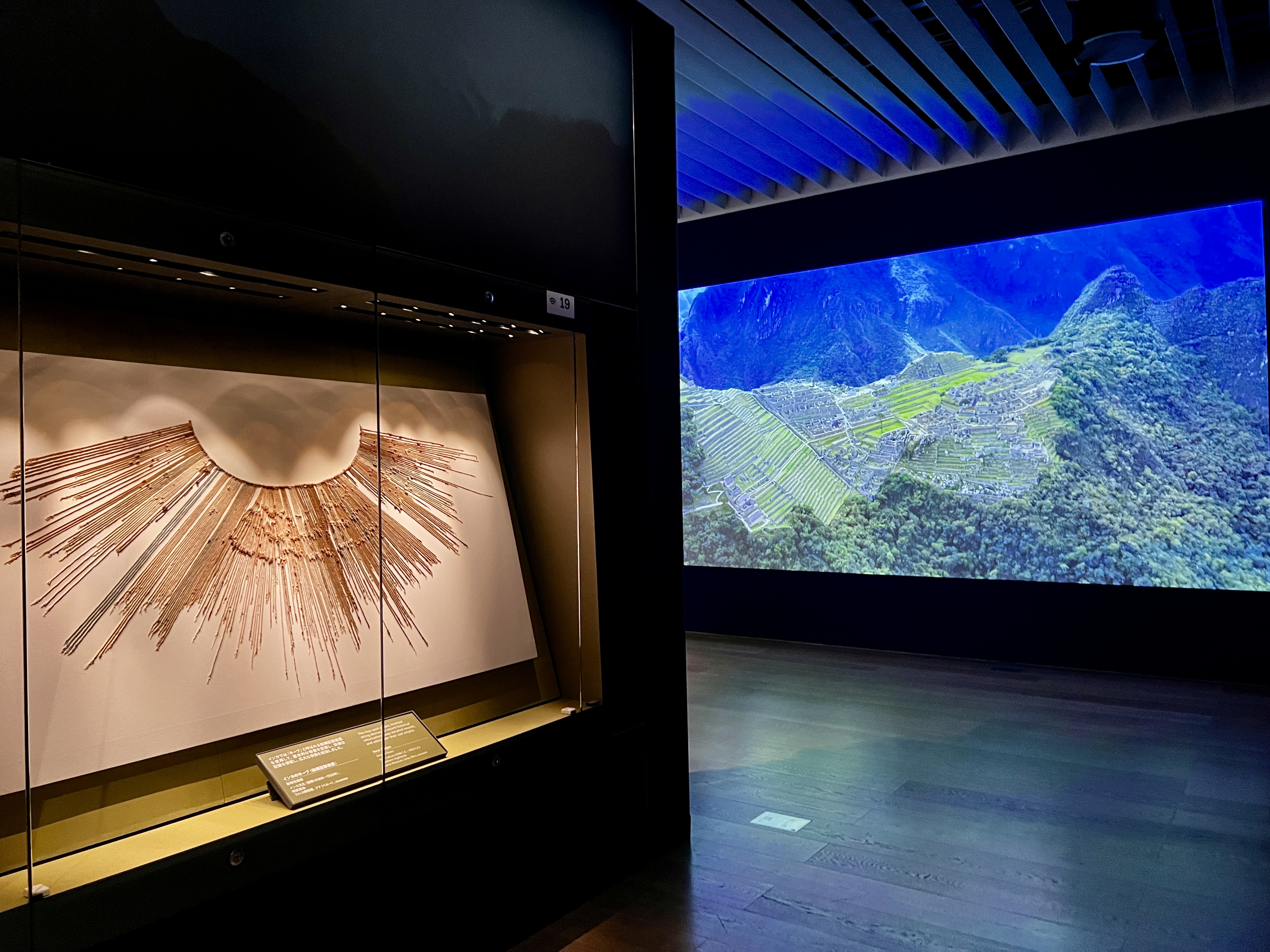 「イントロシアター」では、巨大スクリーンにアンデスの大自然と天空都市マチュピチュが映し出される。神話の英雄“アイ・アパエック”の登場とともに、展覧会が展開するストーリーへと来場者を誘う。