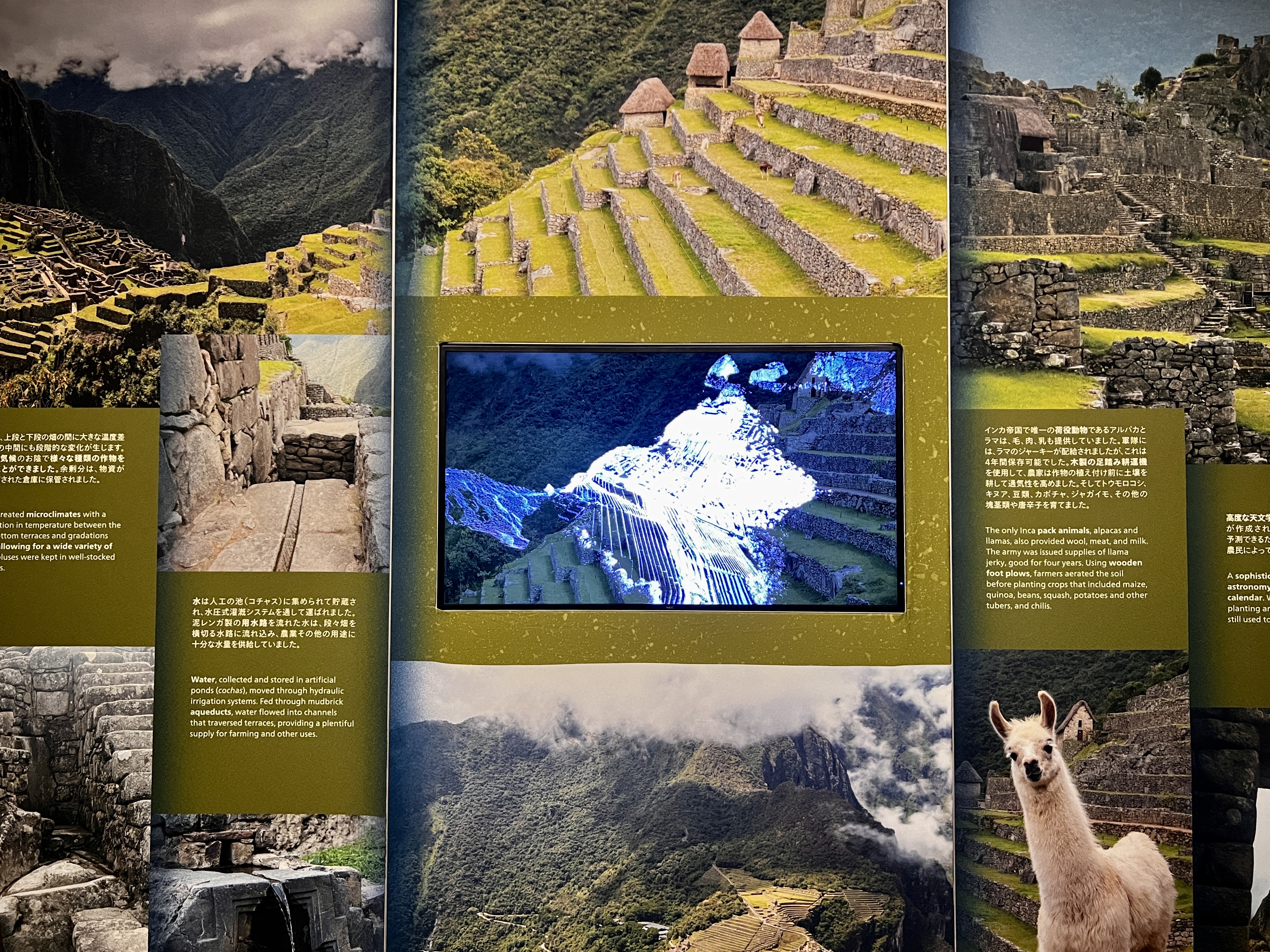 最後の「マチュピチュ」では、インカ帝国の叡智と統治のかたちをいまに伝える。帝国は、血縁を基盤とした政治制度と官僚機構により多様な文化を取り込み、金細工や建築、灌漑技術を発展させていた。