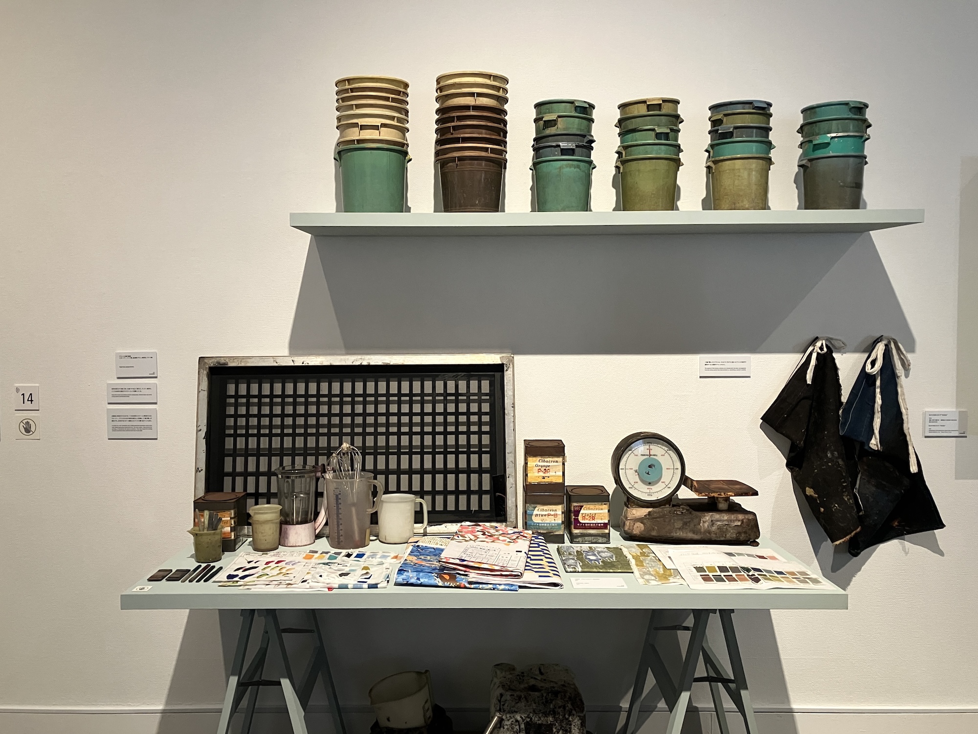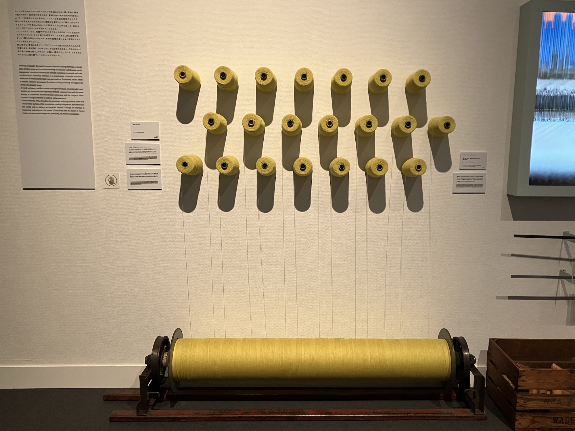 会場では、各工場での制作風景を映した映像のほか、織物工場や刺繍工場、プリント工場で使われている道具、修繕用のミシン、テキスタイル見本、色見本などの実物を展示。