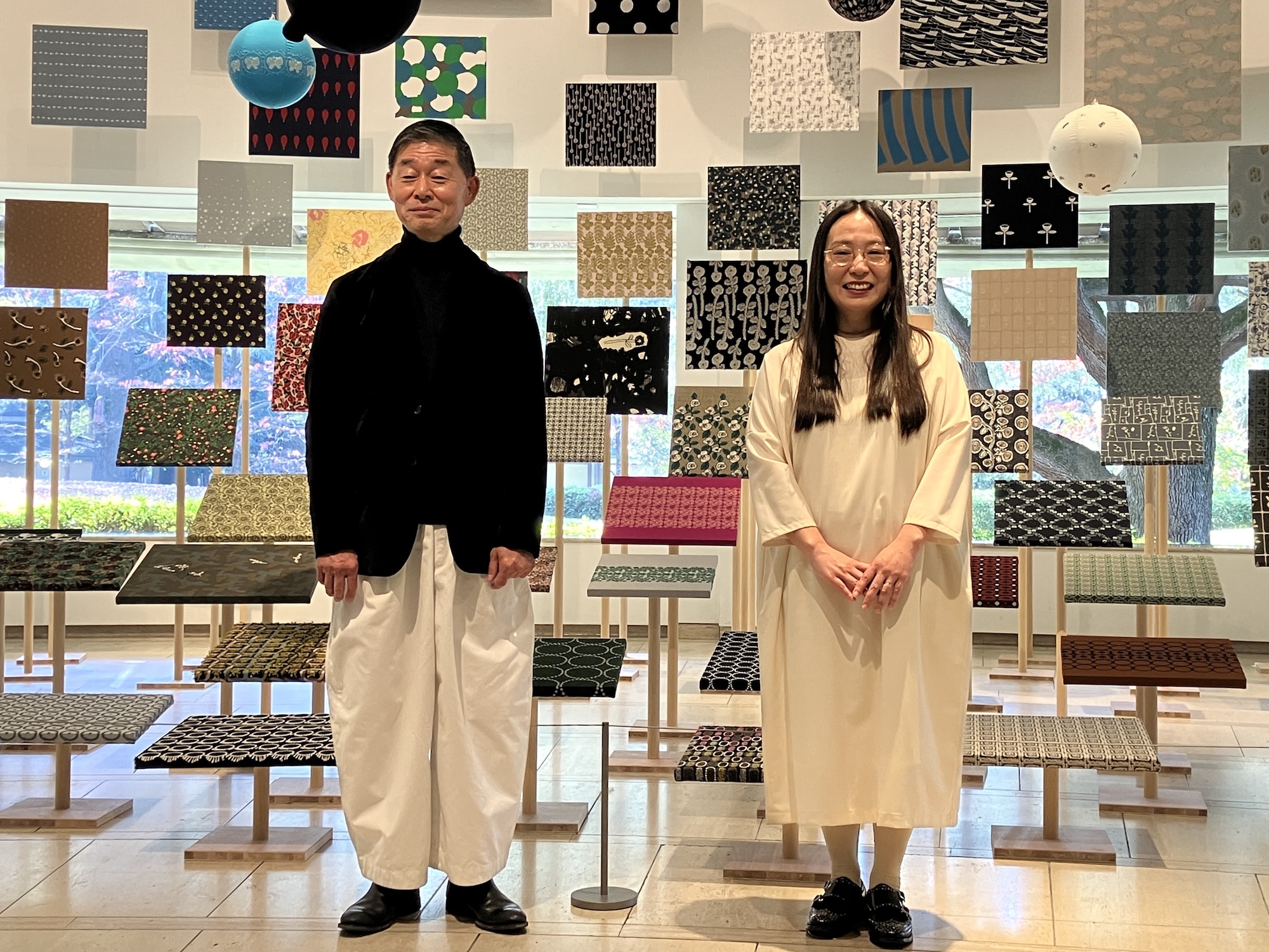 ミナ ペルホネンは、ブランド創設時から洋服を布地から作るという姿勢を貫いており、これまでデザインしたテキスタイルの図案は1000種を超える。ここではそのうち約180種を、蝶、空、花、幾何学、プリズムなど、モチーフや発想源ごとにグルーピングしてインスタレーションとして展示。個々のデザインのゆるやかなつながりに目を向けると、ひとつのデザインがワンシーズンで終わることなく、別のデザインへと派生していく様子が見えてくる。