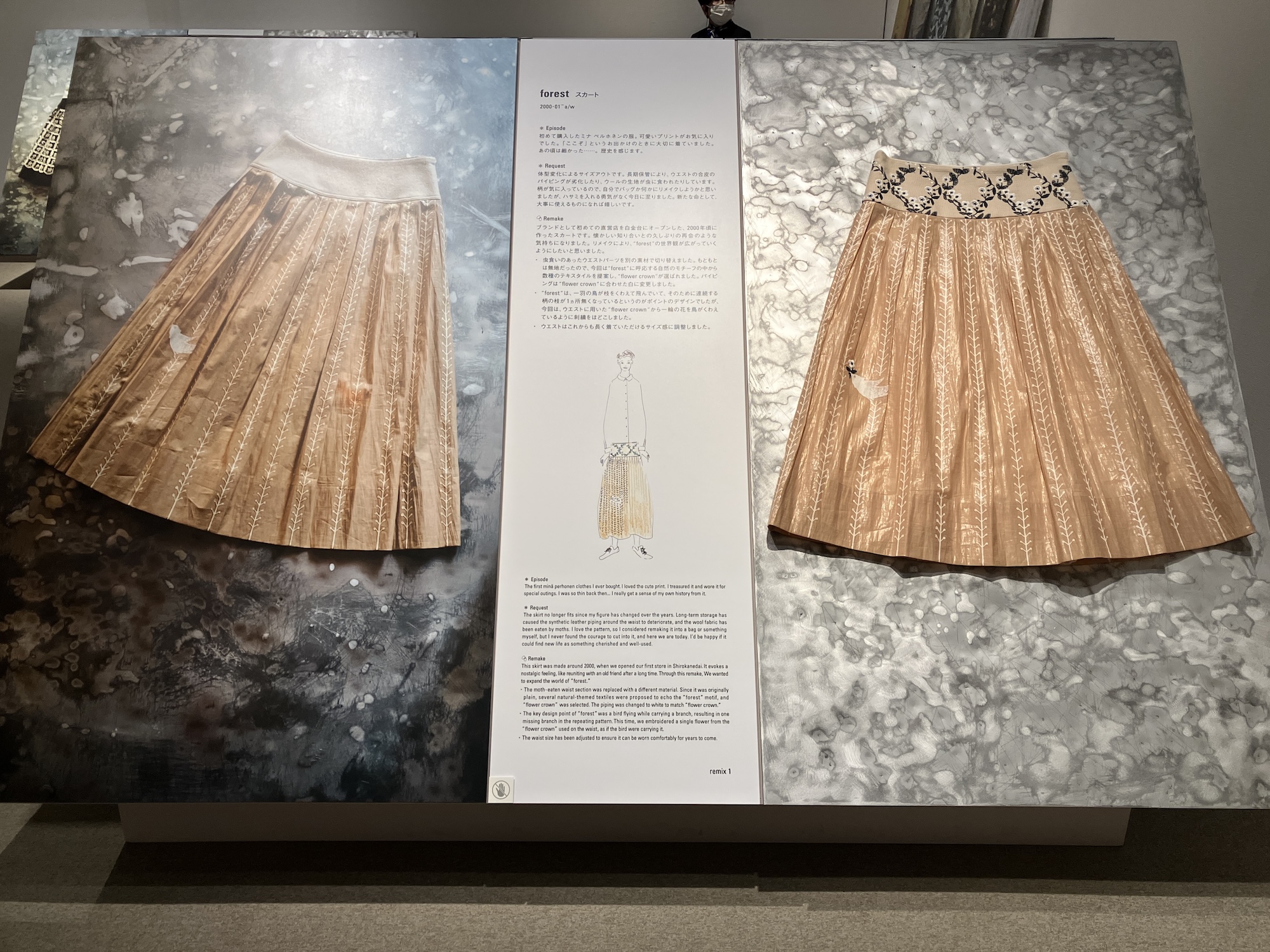 そして最後のエリア「remix」で紹介されるのは、1着を長く着るためにミナ ペルホネンが行っているリメイクやリフォームなどの活動だ。流行に左右されず、使い捨てではなく循環を生むデザインを体現する同ブランドでは、創設当初から修繕やお直しを行ってきた。