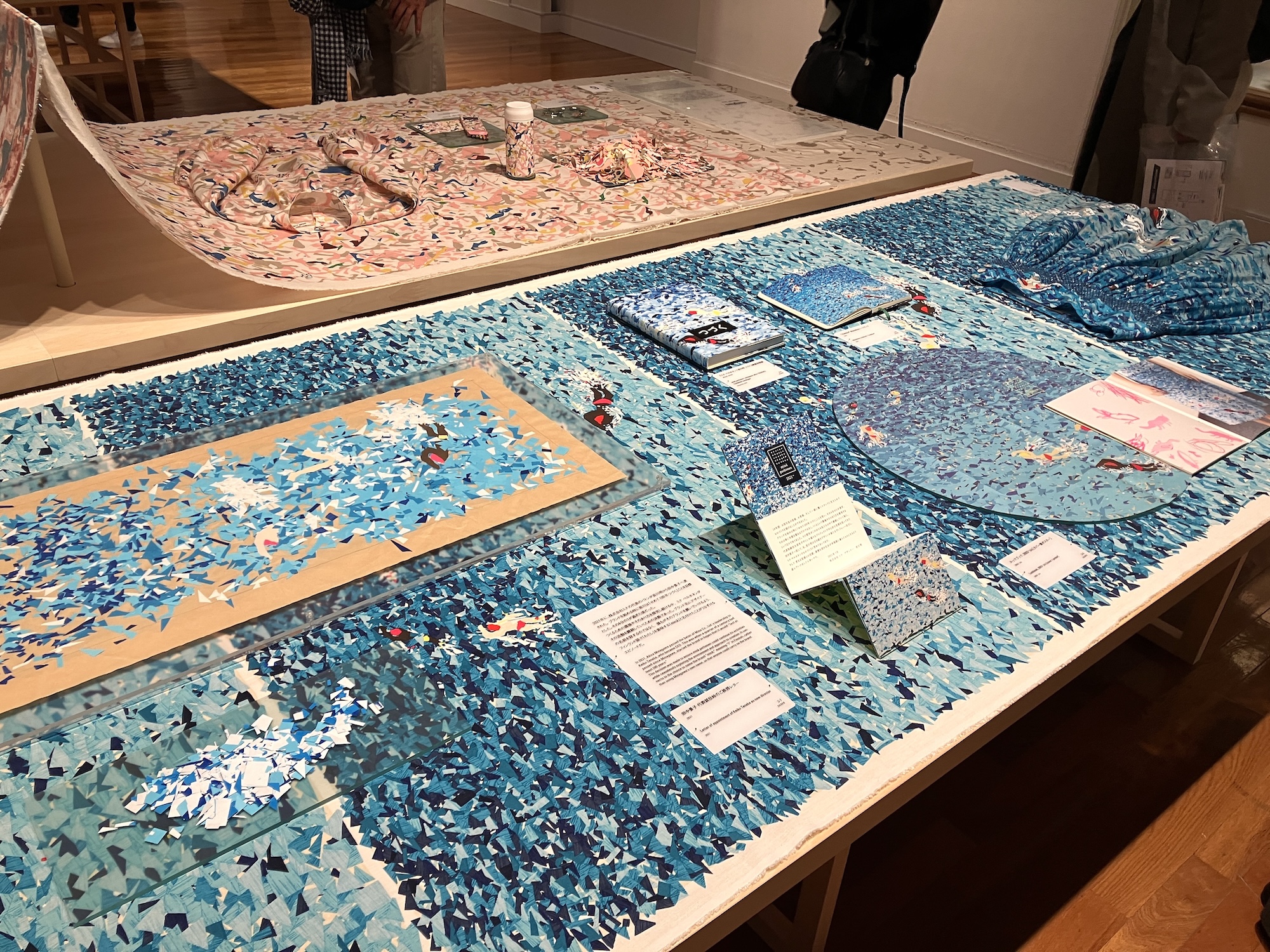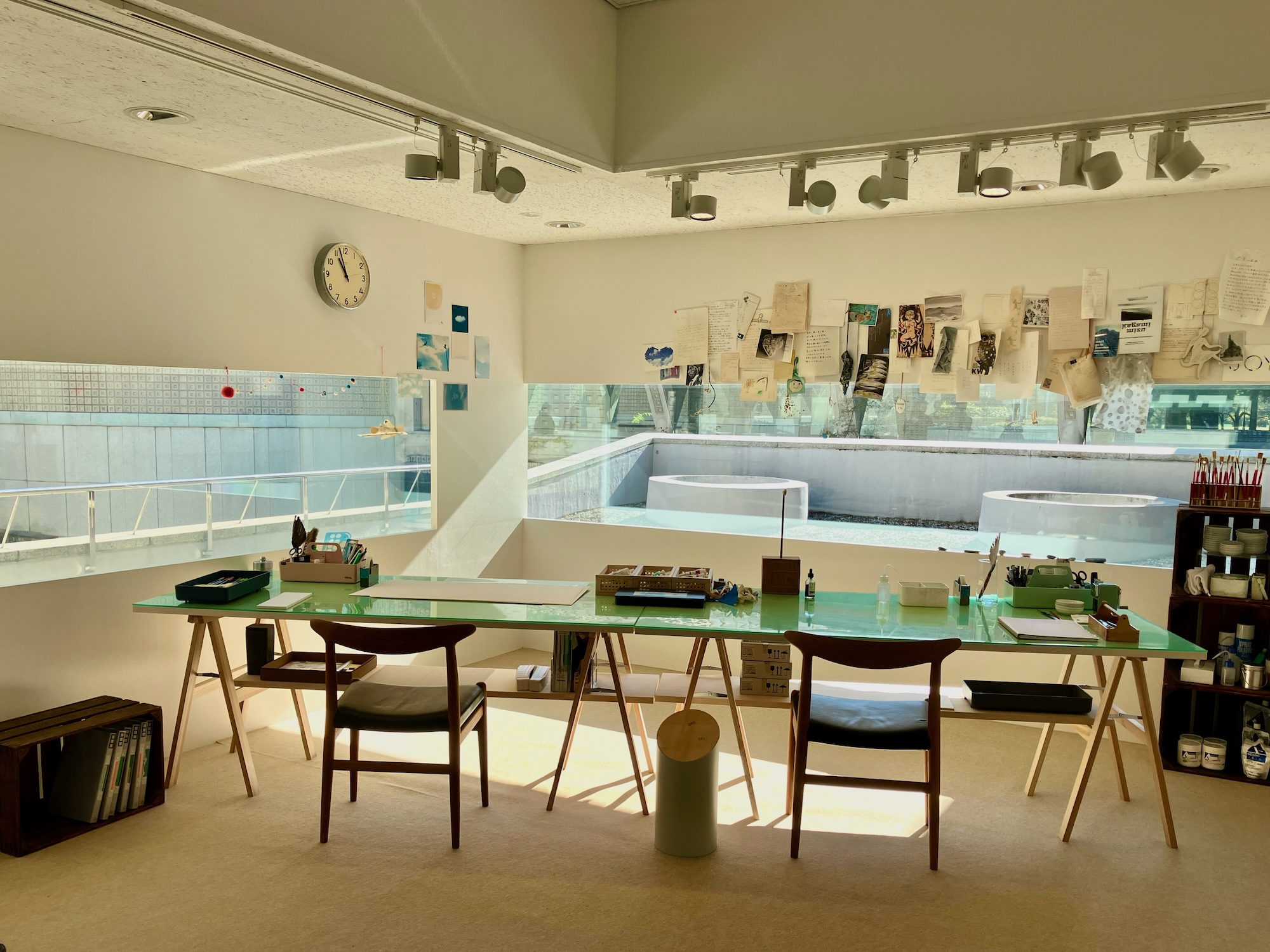 また「humming」では、ミナ ペルホネンのアトリエが美術館内に登場。大きな公園に面して皆川と田中のデスクが並ぶ、ブランドのデザインの現場が再現されている。会期中、皆川と田中が実際にこの場で作業を行うこともあるという。