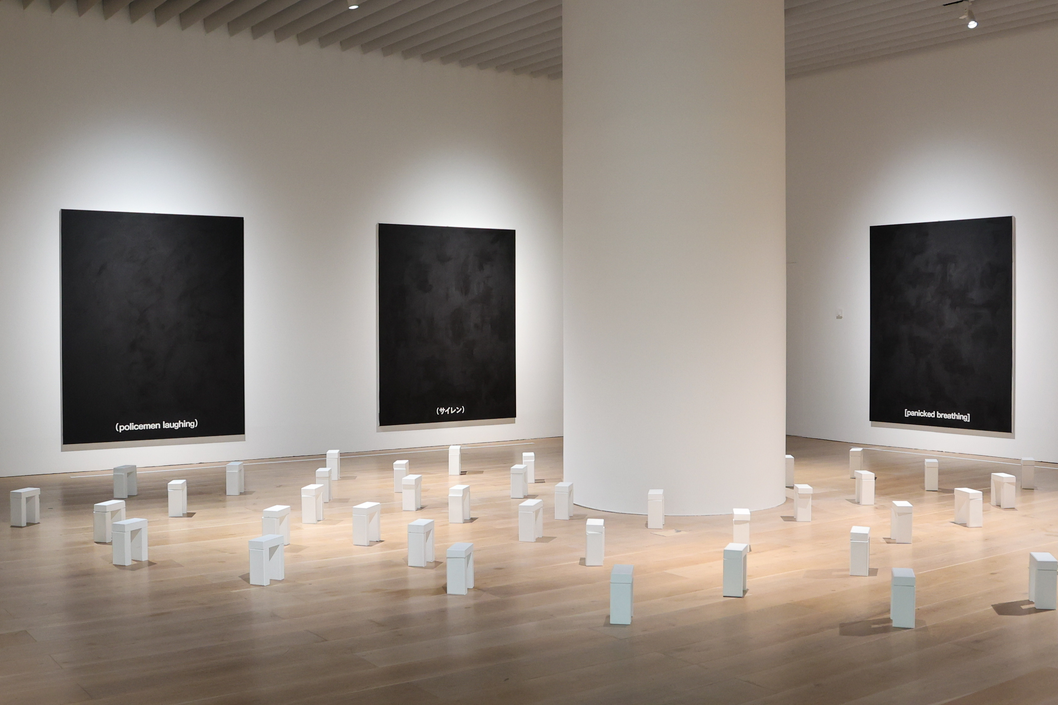 長らく東京を拠点としているガーダー・アイダ・アイナーソンは、テレビや映像の音声をテキストで表示するクローズド・キャプションを絵画イメージとして転用した作品を展示。鑑賞者はテキストの内容を通じて、黒く塗り込められた画面の先にある意味を再考することとなる。