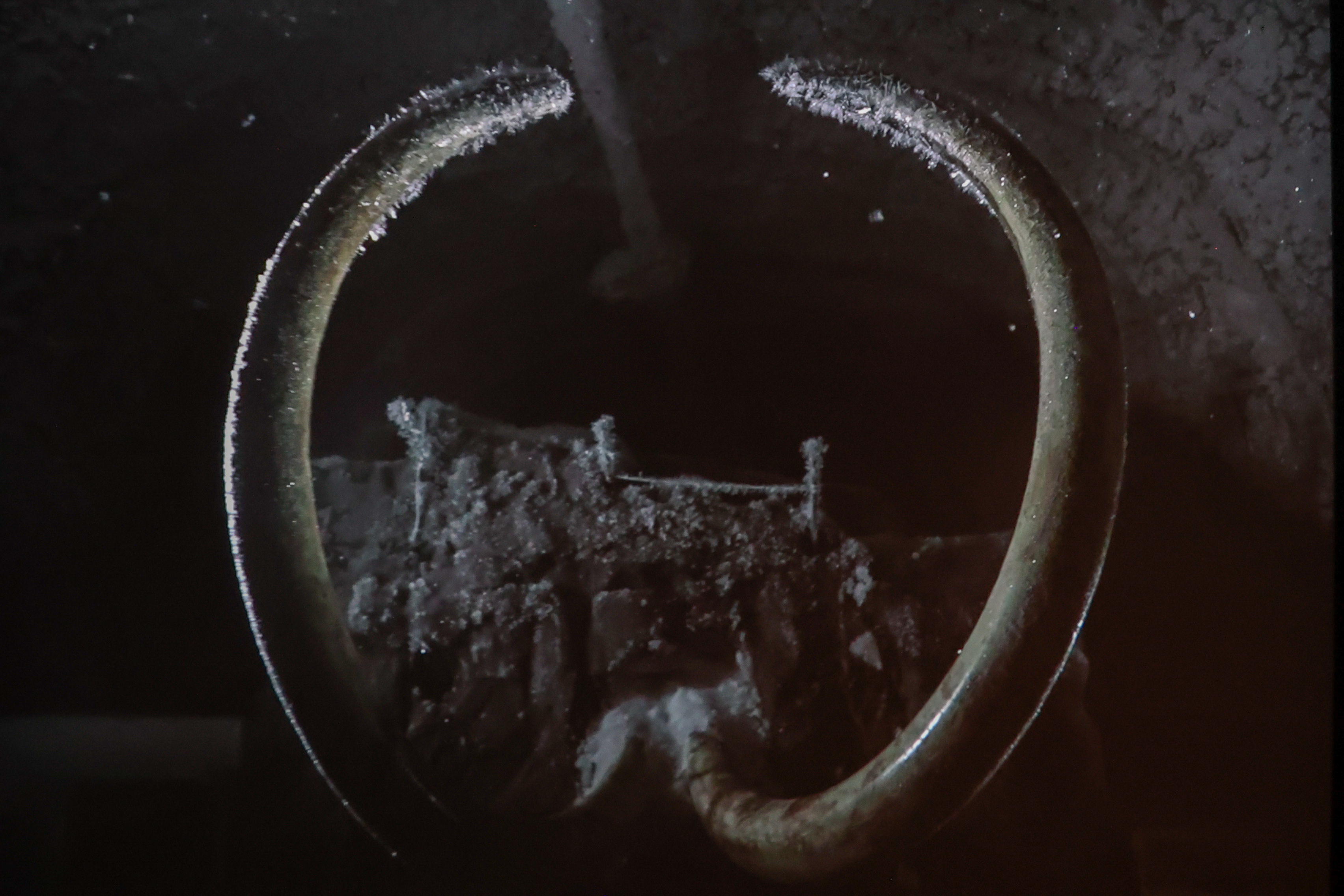 異なる文化間でイメージや意味がどのように伝わり、変化していくのかを探求する荒木悠は、牡蠣の貝殻をフォトグラメトリによって撮影した映像インスタレーション《聴取者》を発表。西洋美術におけるヴァニタス(虚栄)のモチーフである貝殻が、宇宙空間の中でゆっくりと動き、表層と意味の間にある非直接的な関係を問い直す。