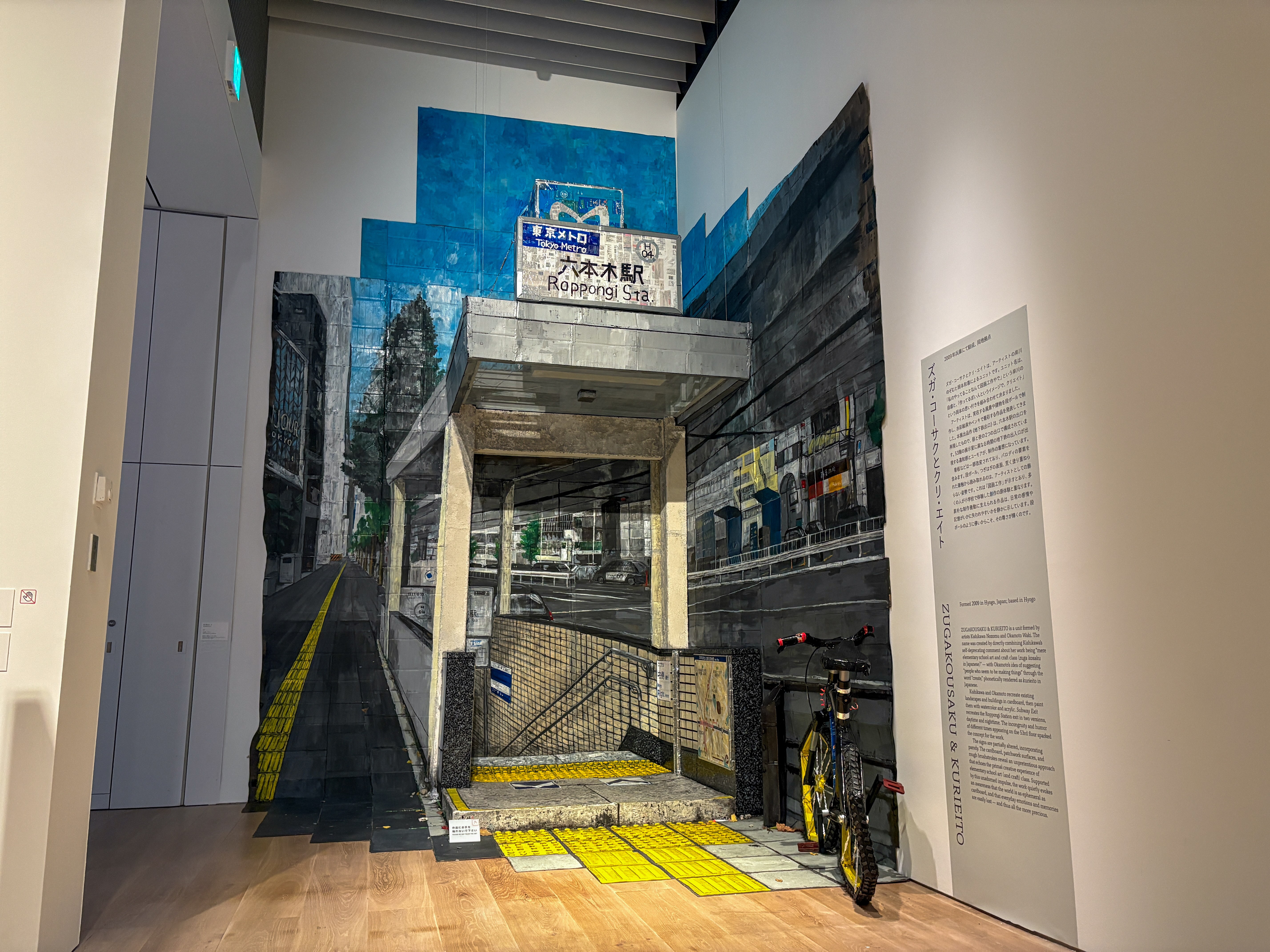 展示室同士をつなぐ通路には、キュレーターの徳山が「本展のダークホースであり、是非知ってほしい作家」と評するズガ・コーサクとクリエイトの作品が計2ヶ所に配されている。ダンボールや紙、ガムテープなどの日常的な素材と、六本木の街で拾った枯葉やゴミなどを組み合わせてかたち作られる同都市の風景は、表現することへの素朴な喜びで満ちていた。