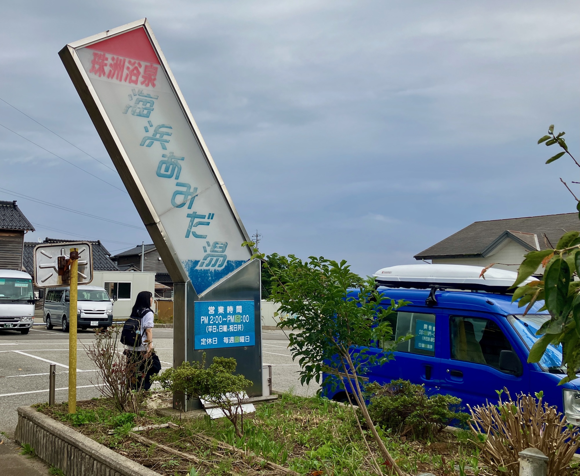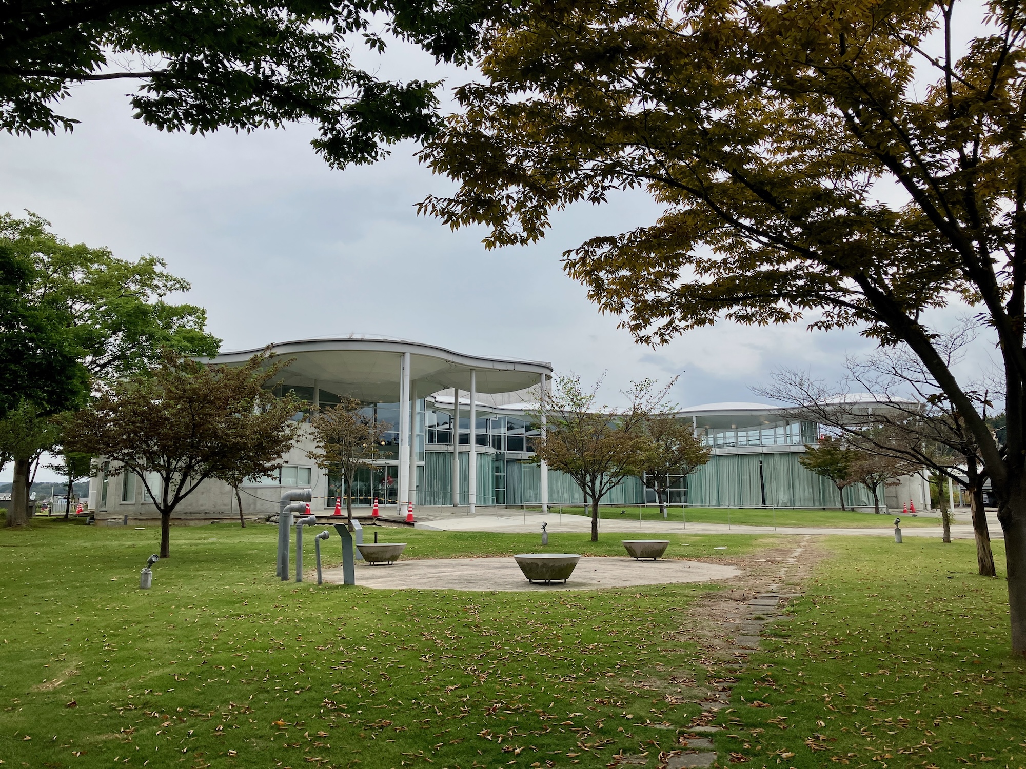 最初の目的地は、珠洲の中心的なエリア、飯田にある多目的ホール・ラポルトすず。パーキングエリアやのと里山空港での休憩を挟み、2時間半ほどかけて到着した。