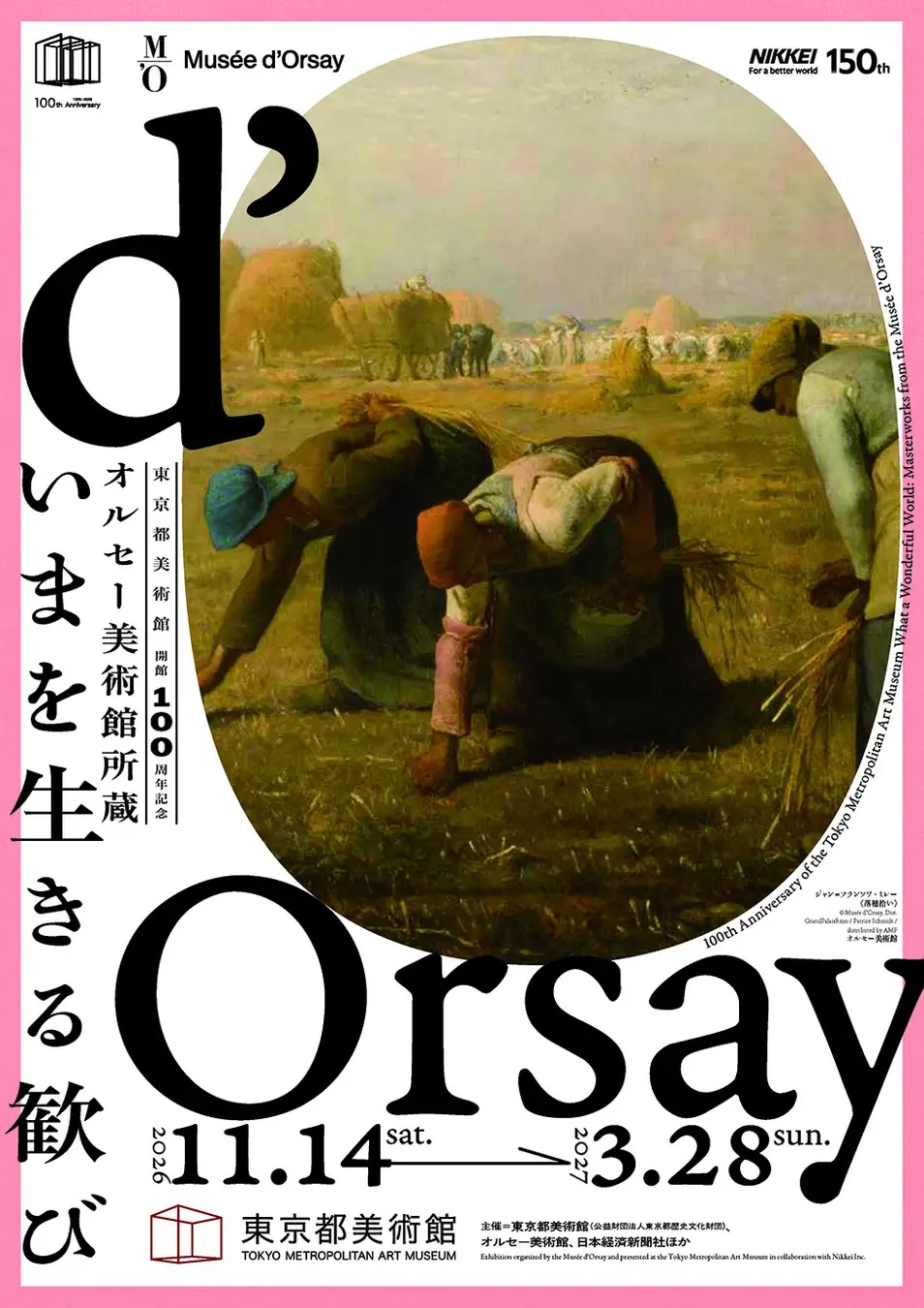 「印象派の殿堂」と称されるオルセー美術館のコレクションから、「いまを生きる歓び」をテーマに絵画、彫刻、工芸、写真など約110点を展示する展覧会。19世紀末から20世紀初頭、急速に変化する社会の中で生まれた芸術は、絶え間ない技術革新を生きる現代にも新鮮な視座を与えてくれる。ミレー《落穂拾い》やルノワール、モネ、ファン・ゴッホの作品を通して、多彩な歓びの表現に触れることができるだろう。